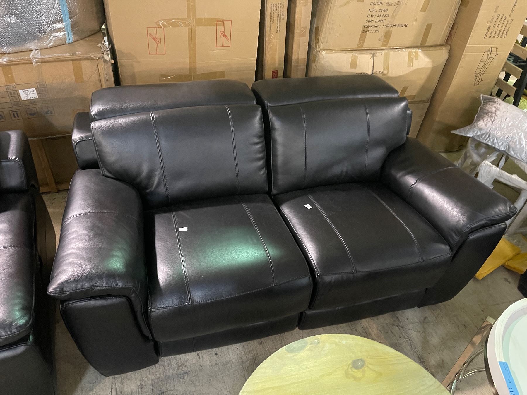Modern Black Leather Reclining Loveseat, Approx. H30" x W62" x 37"