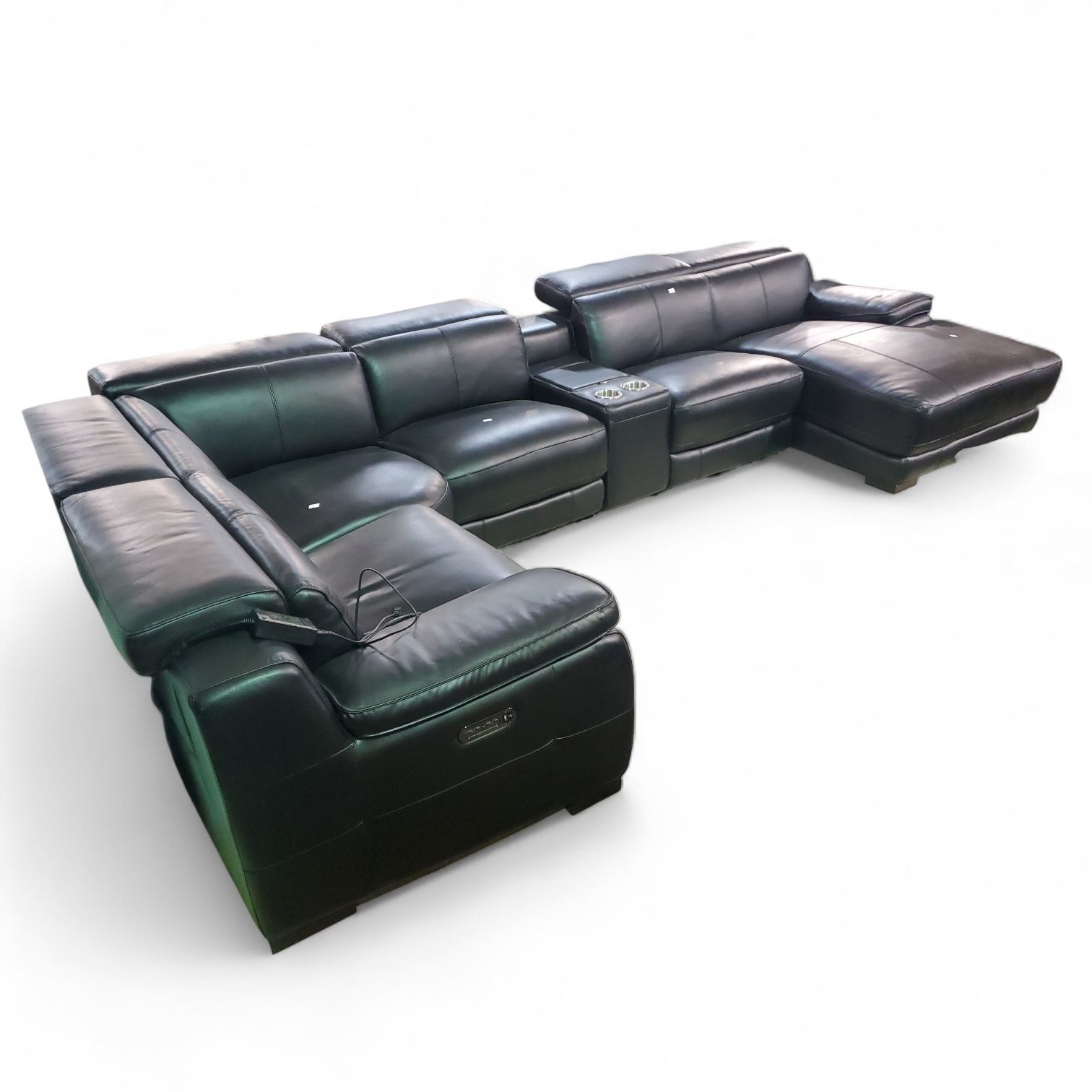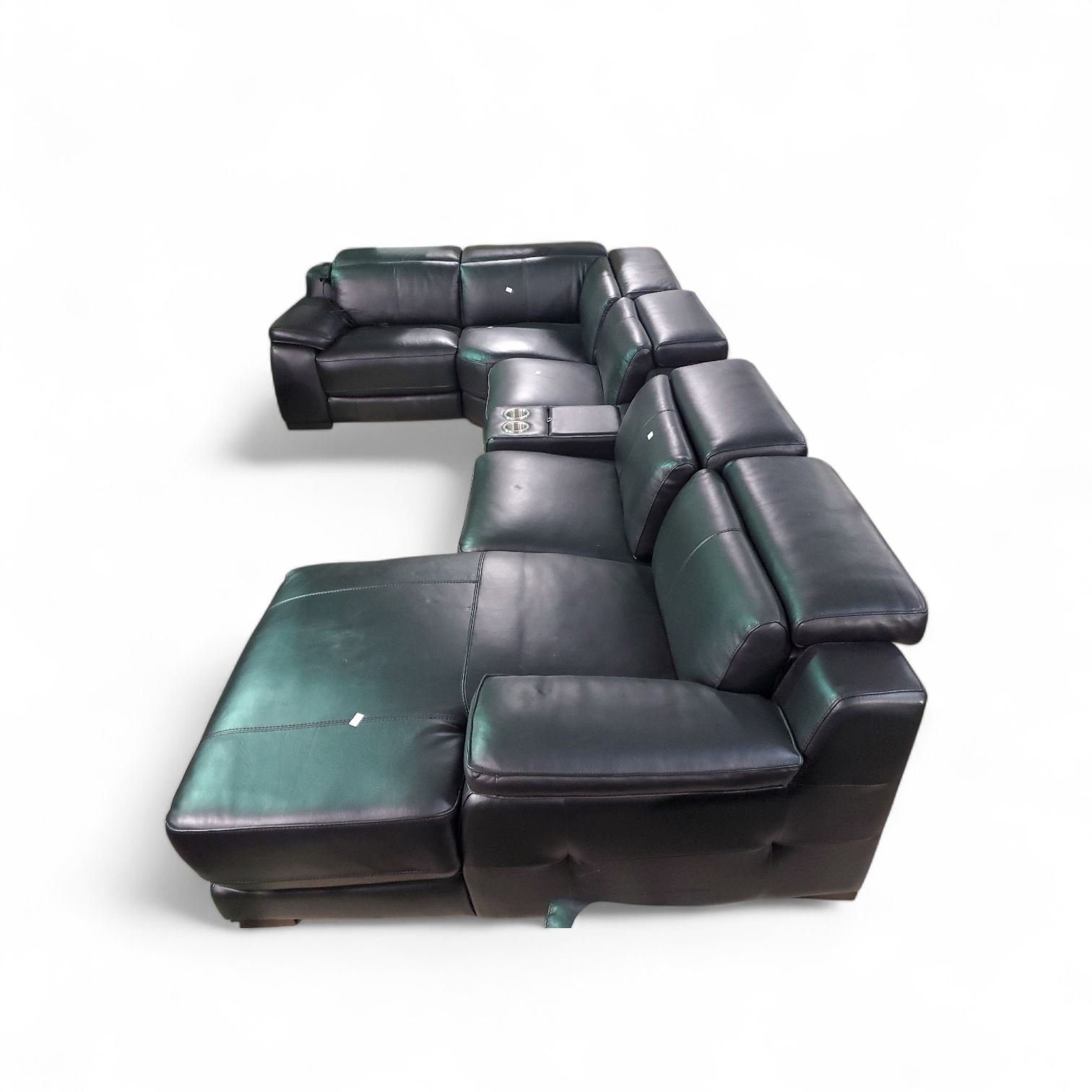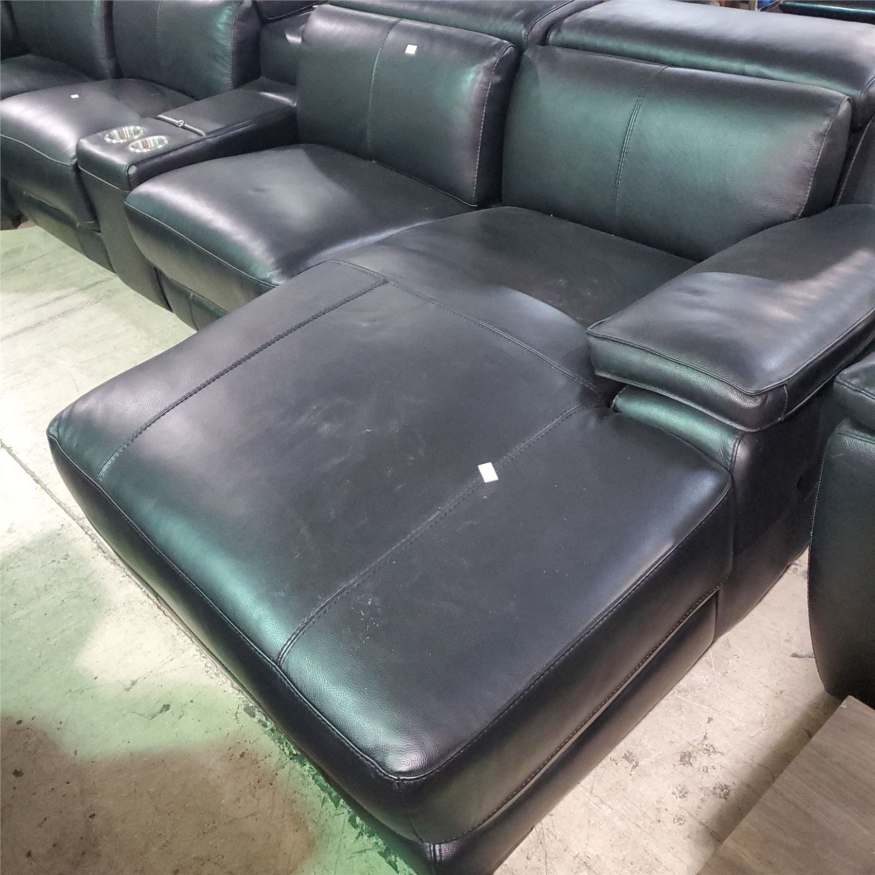 Modern Black Leather Reclining Sectional with Console Armrest And Chaise Lounge