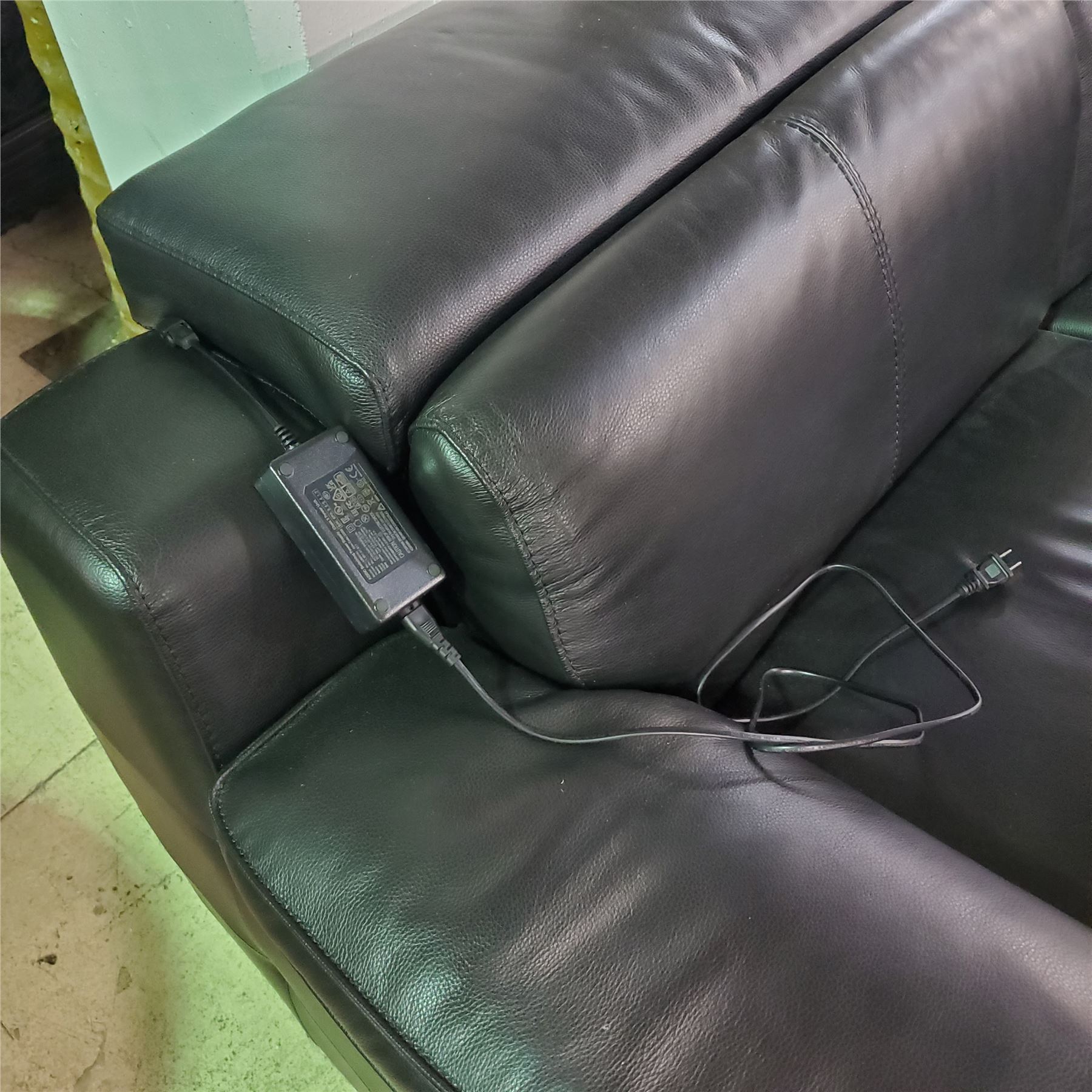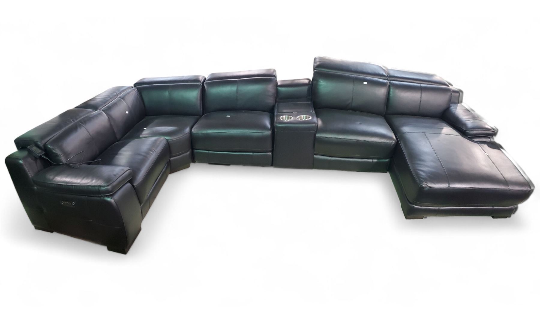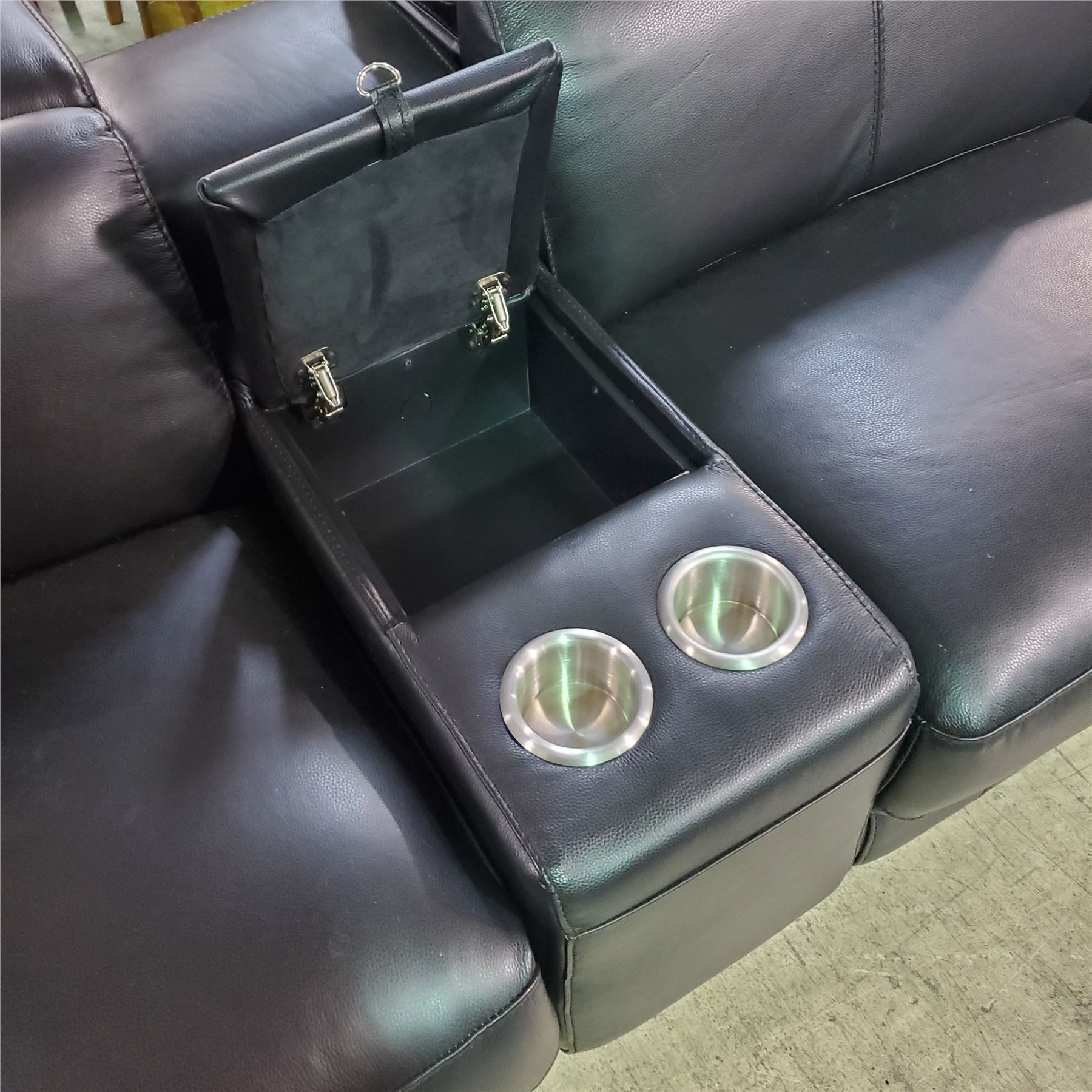 Modern Black Leather Reclining Sectional with Console Armrest And Chaise Lounge