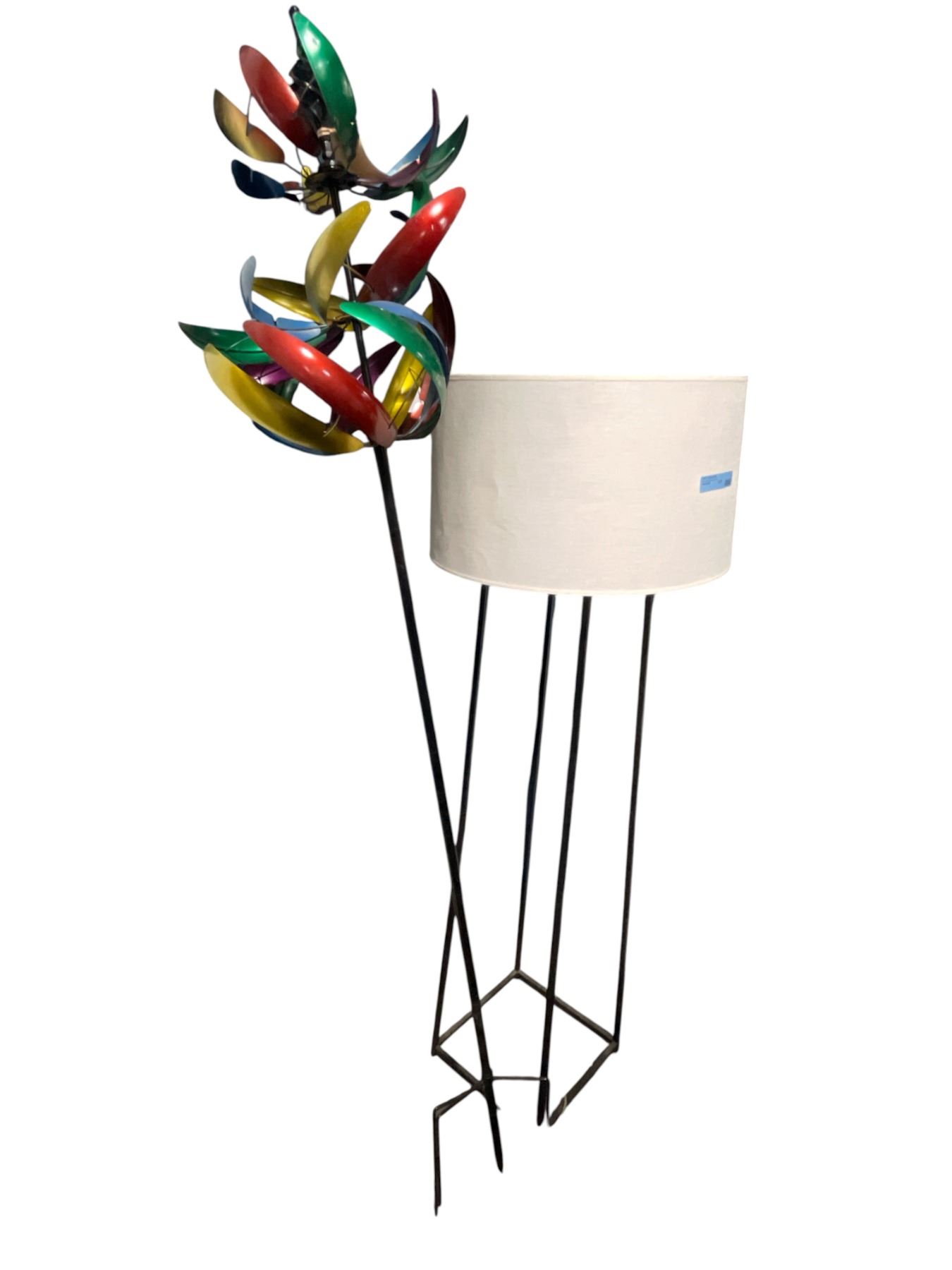 Modern Black Metal Floor Lamp (H66") & Wind Spinner Decor (H81")