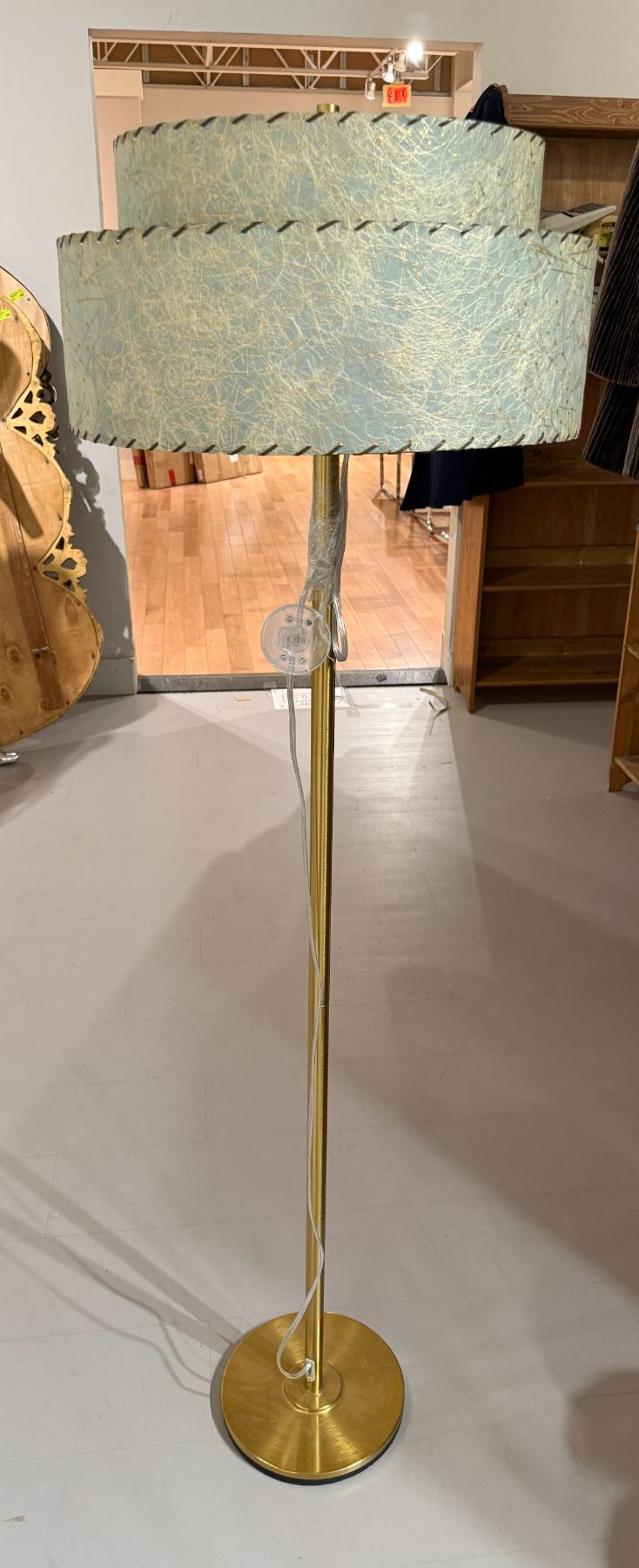 Modern Gold Tone Floor Lamp with Vintage Shade
