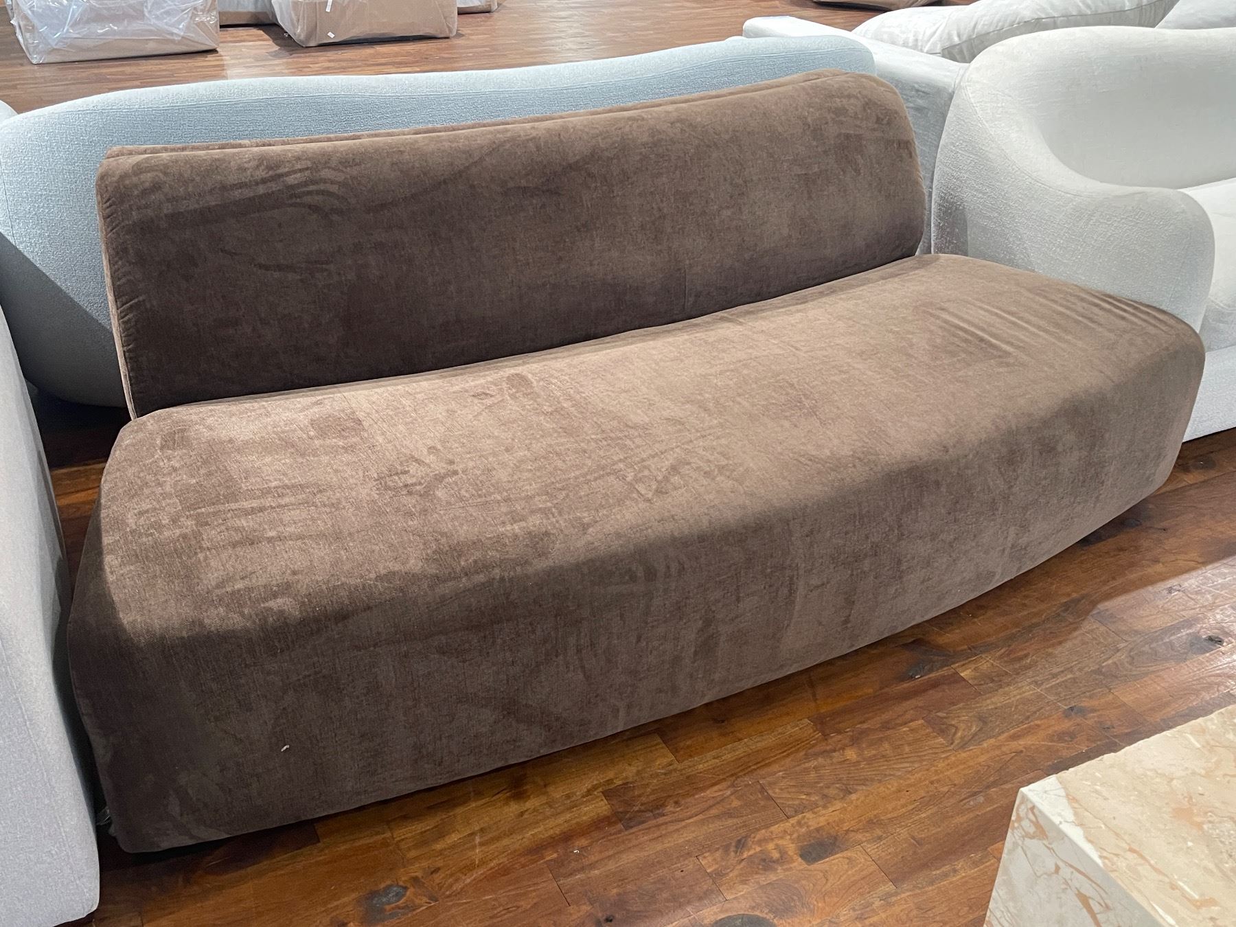 Modern Upholstered Armless Sofa / Bench - Brown Fabric - 78" L x 37.5 W x 29" H