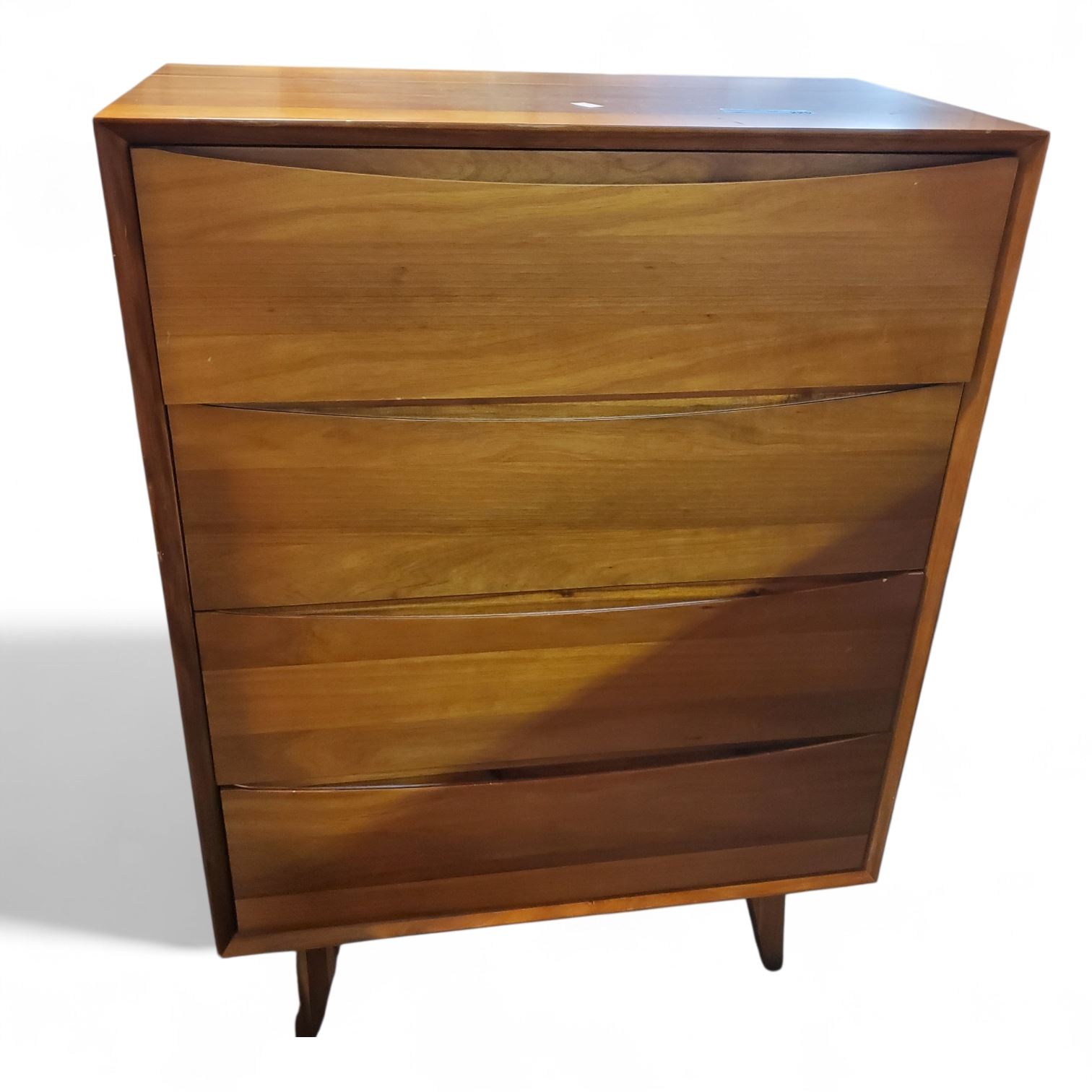 Modern Walnut Wood Storage Chest, H50" x W36" x D19" (Note: One leg Broken)
