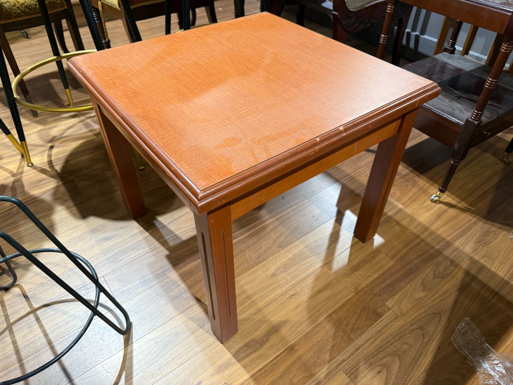 Modern wood coffee table with a square top measuring 24 inches in length and width and 20.5 inches in height. Constructed entirely of wood, it features a clean and simple design suitable for various living spaces. Item is as pictured.