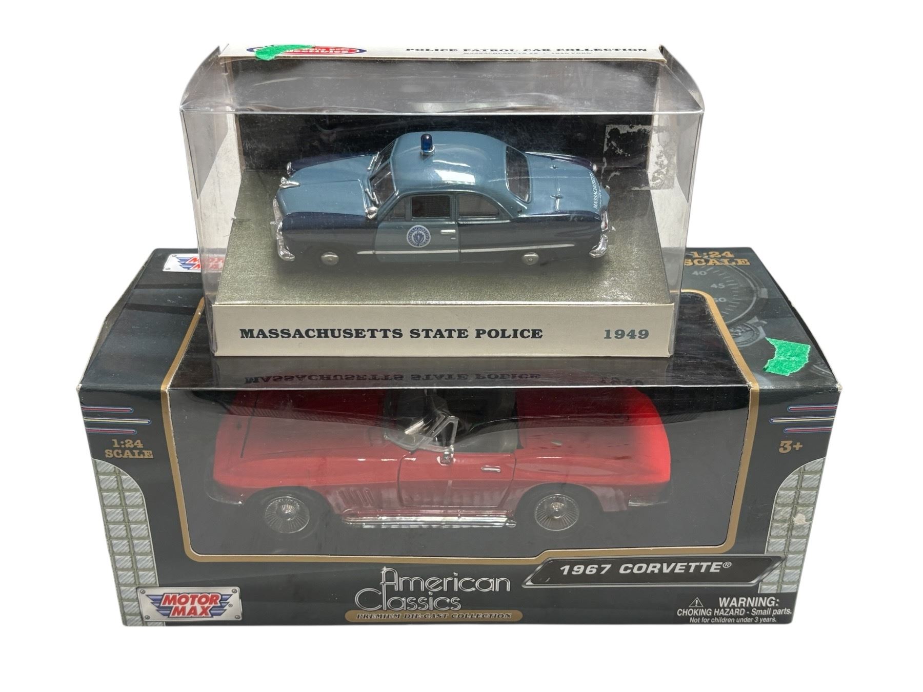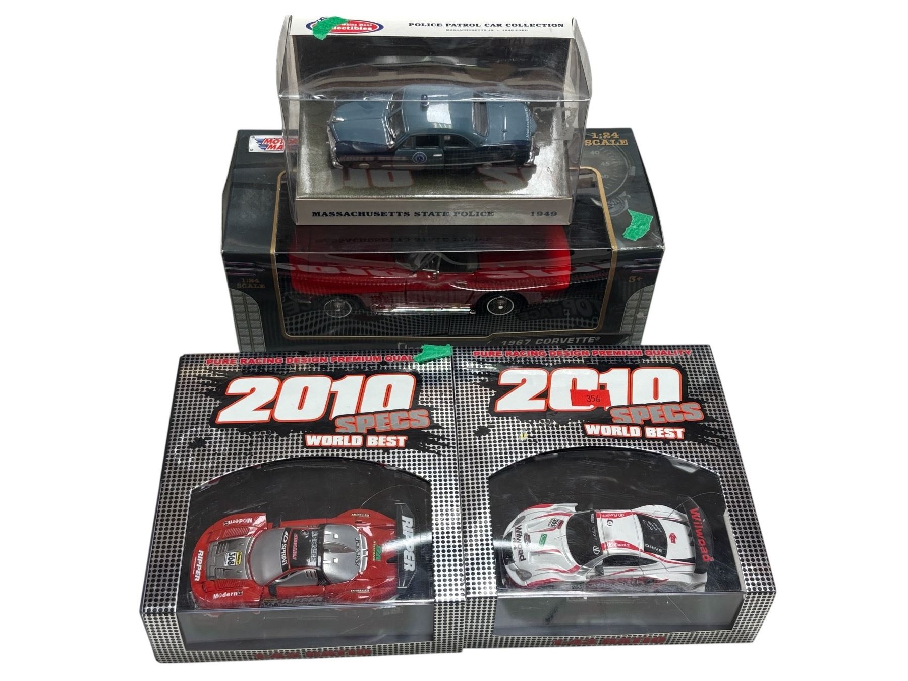 Collection includes 2 diecast cars by Motor Max and White House Collectables in various scales, alongside 2 remote control cars from the Top Race Series in 1:43 scale. The remote control cars feature detailed designs and realistic proportions, complementing the diecast models in this diverse set.