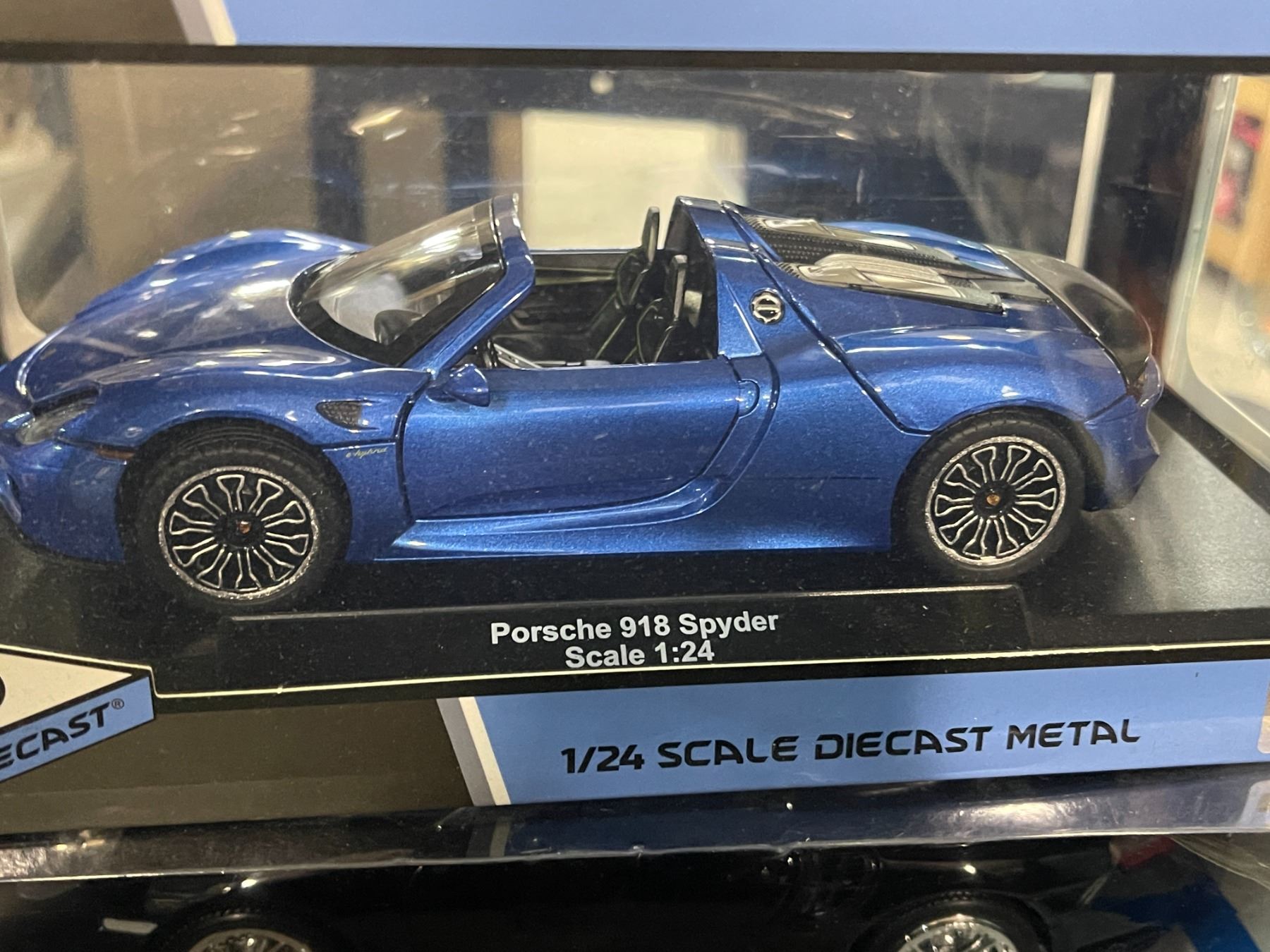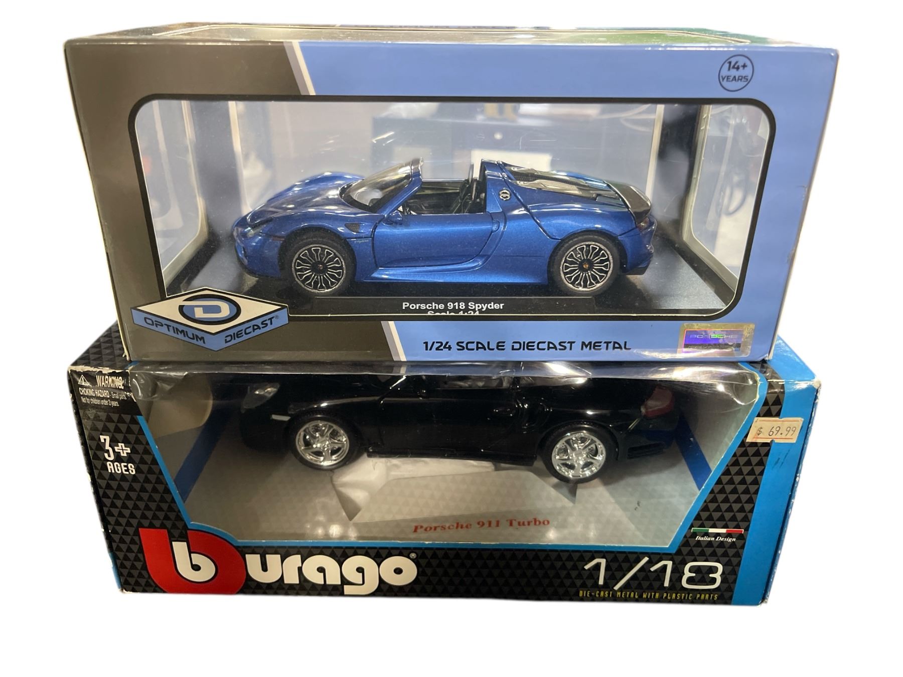 Motor city classics 1:24 2010 Porsche 918 Spyder Blue and Bburago 1/18 Porsche 911 Turbo