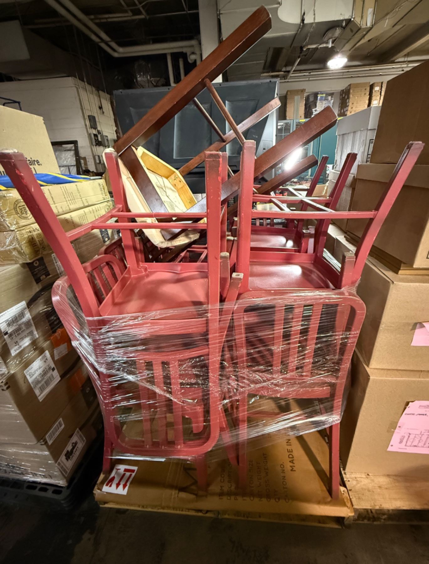 Movie Set Dec Pallet - approx.10 Assorted Red Wood Dining Chairs