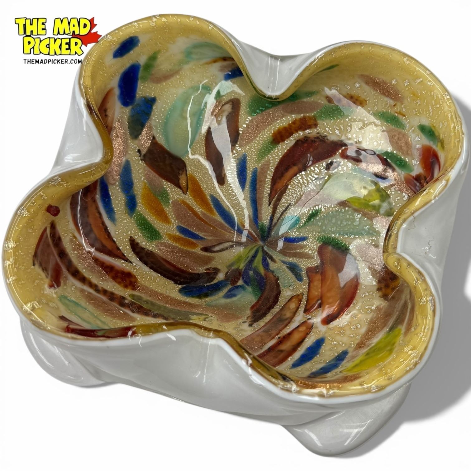 Multi-Colour & Metal Fleck Murano Glass Bowl - 4" tall x 9 " diameter