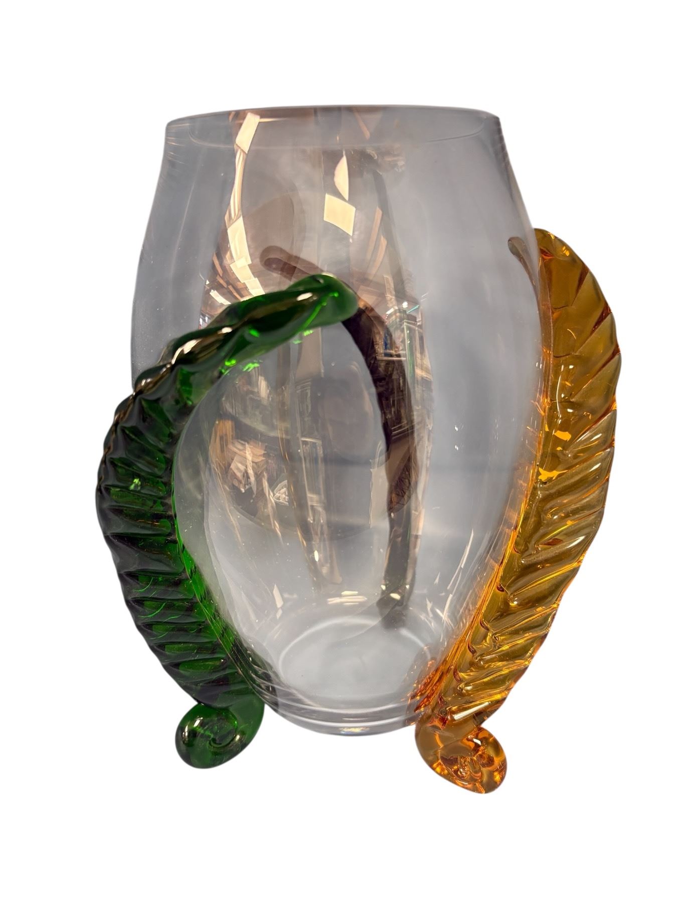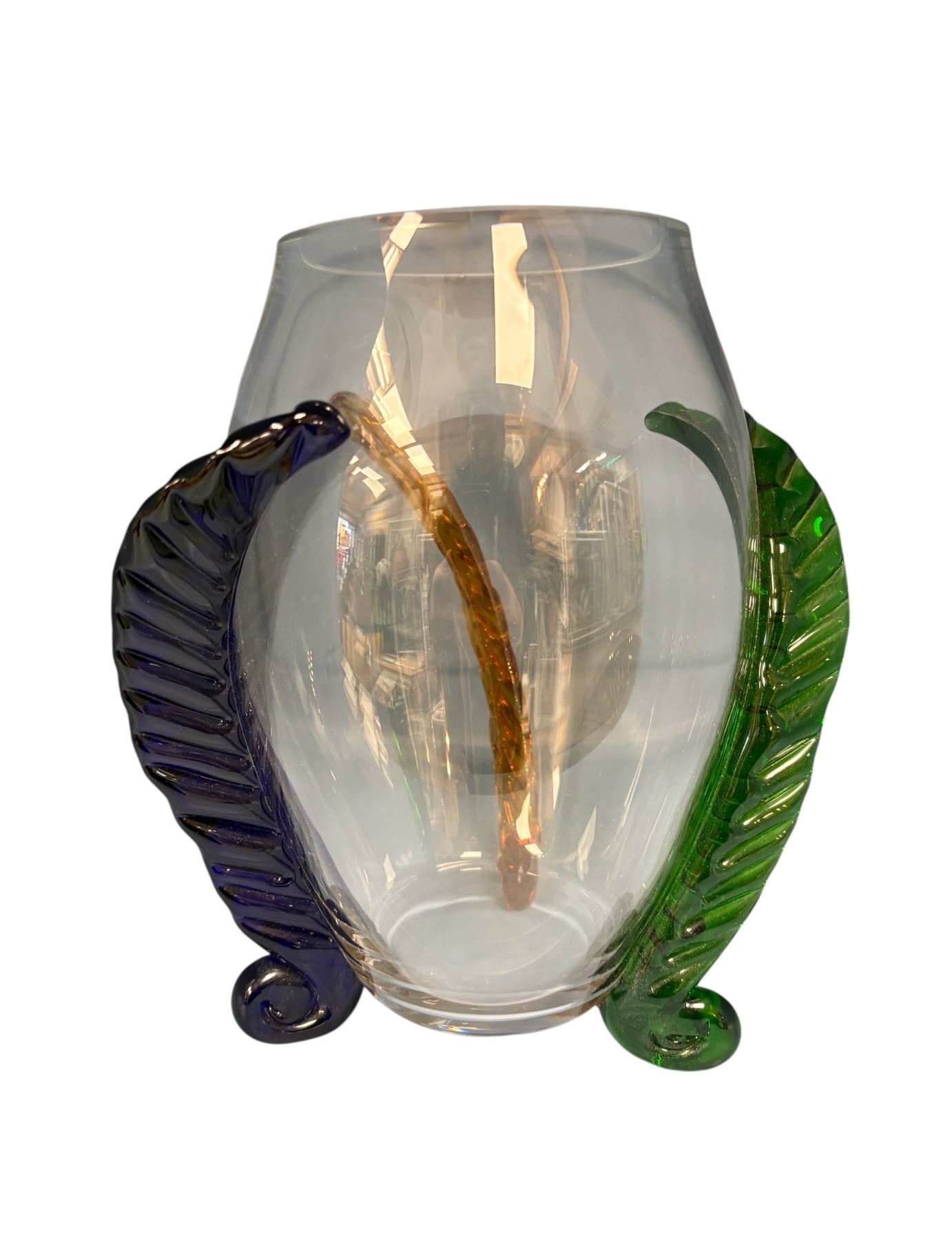 Czech Munn Art Glass vase, hand-blown and signed. Stands 10 inches tall. Produced mid-20th century, known for quality craftsmanship and unique designs. Likely features unique patterns and vibrant coloring typical of Munn Art Glass pieces from this era.