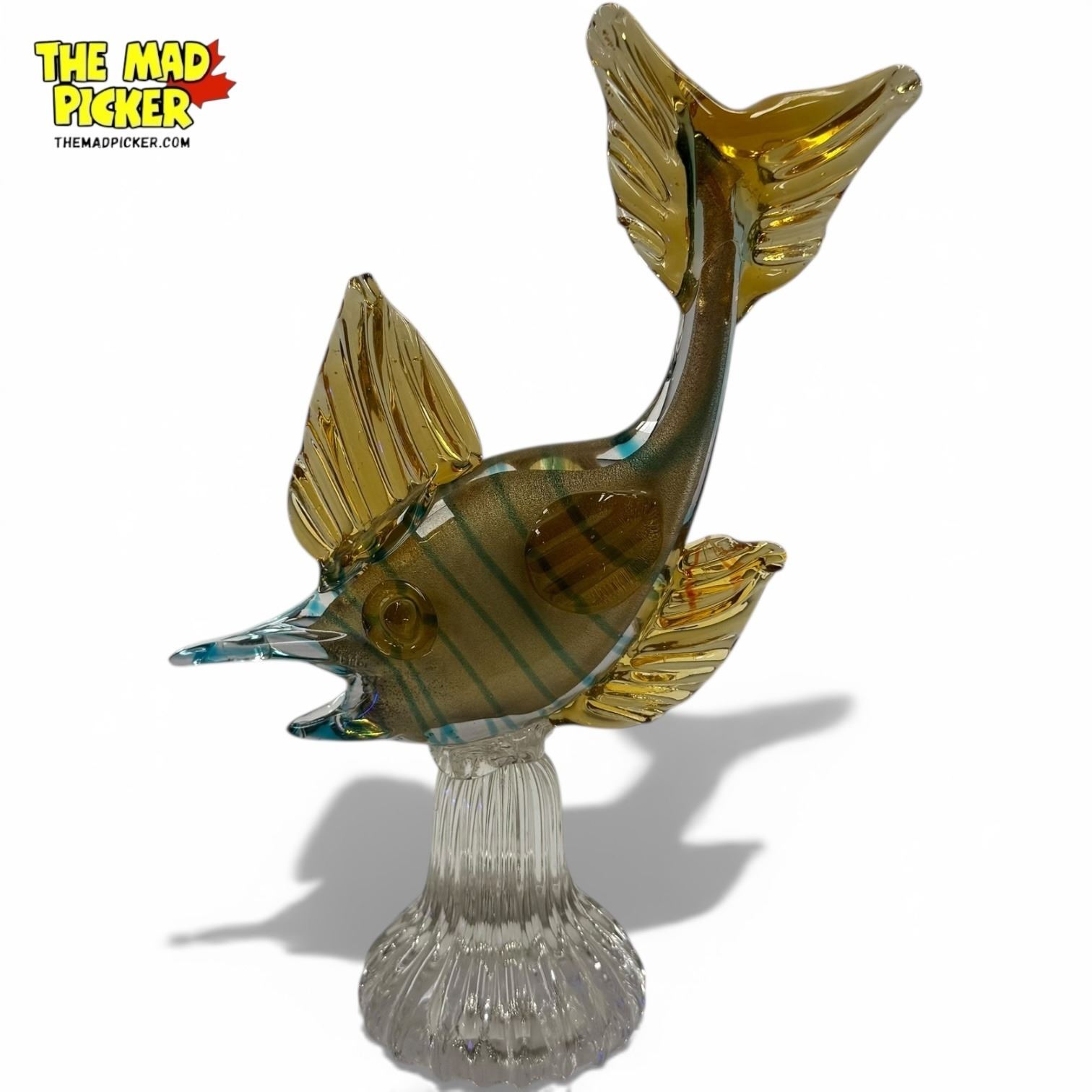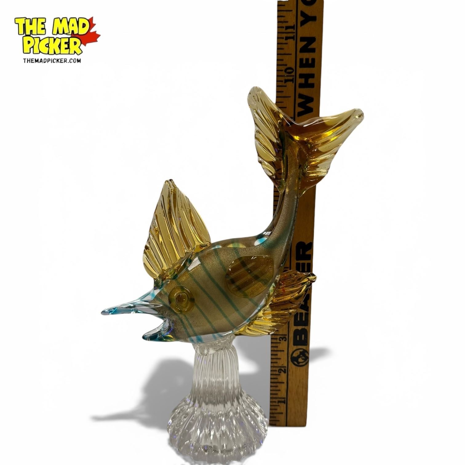 Murano Glass Gold & Blue 10" Fish Statue