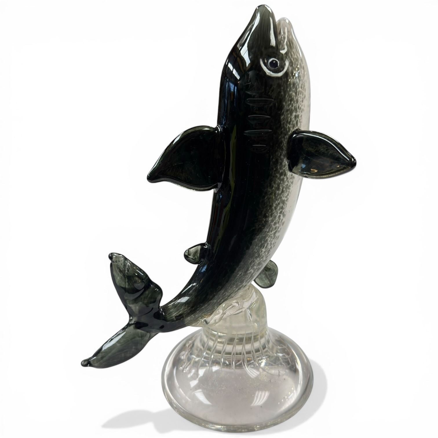 Murano Glass Statue of a Breaching Fish - 10" tall on a 4.5" base