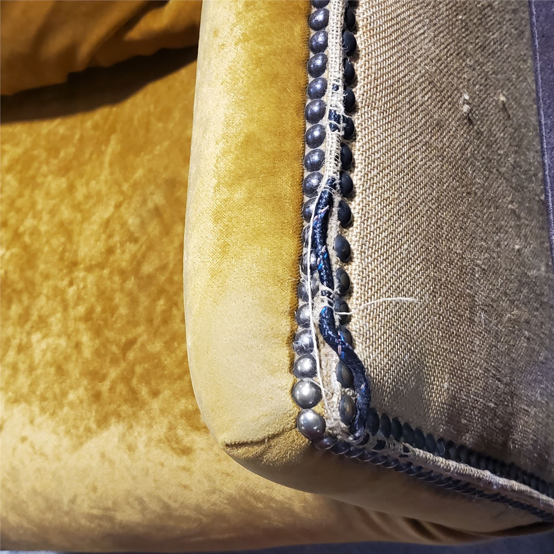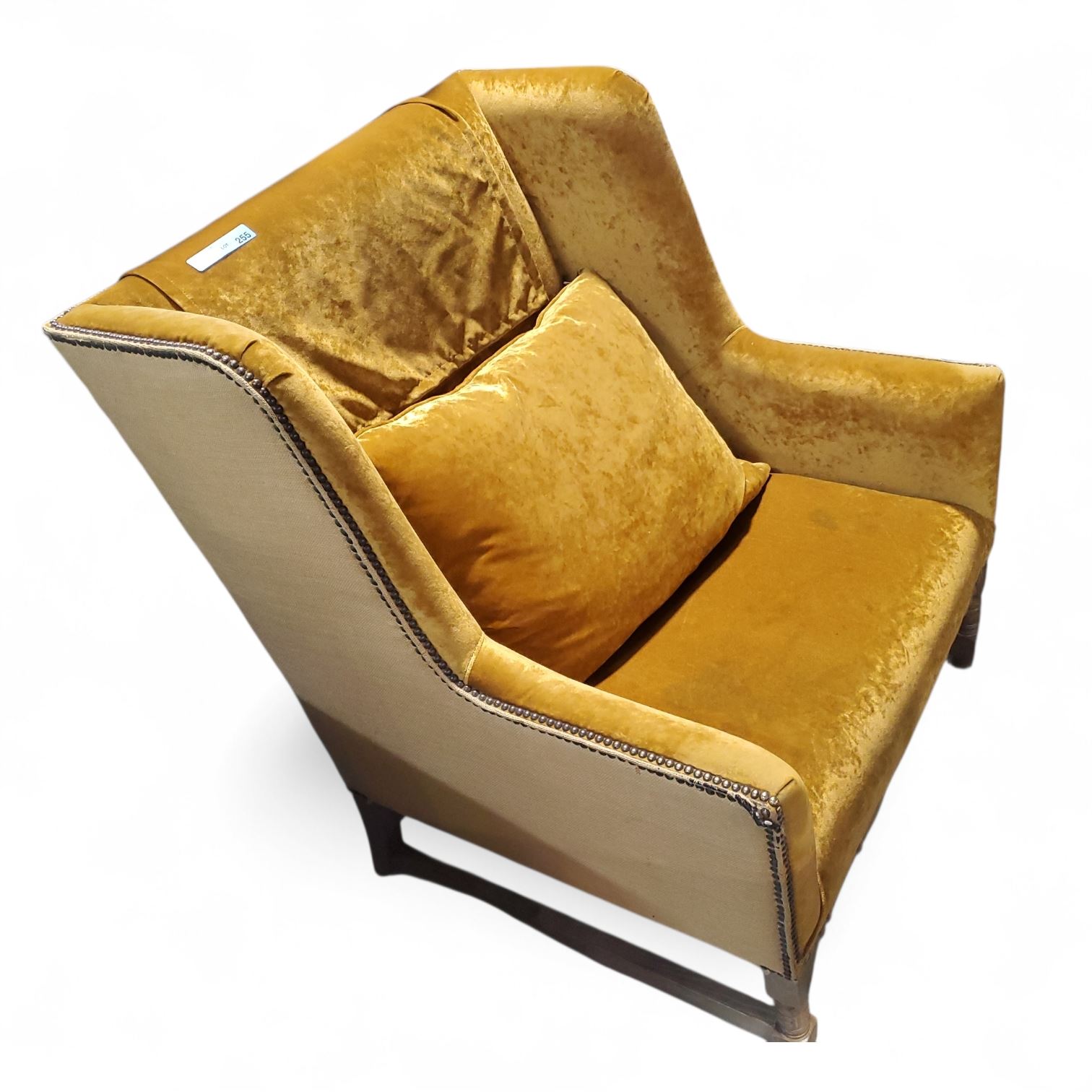 Mustard Yellow Velvet Accent Chair with Nailhead Trim, Approx. H43" x W35" x D31"