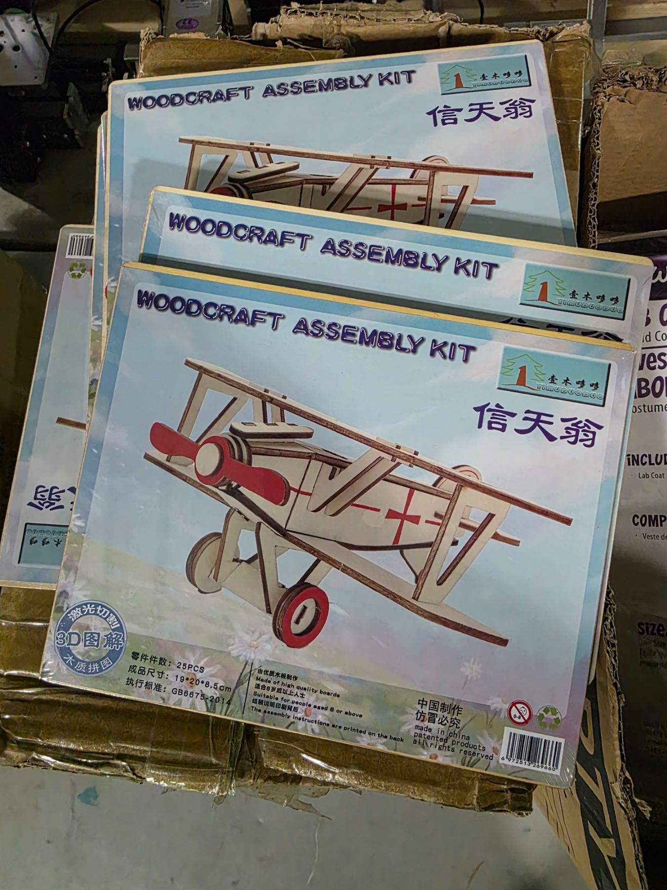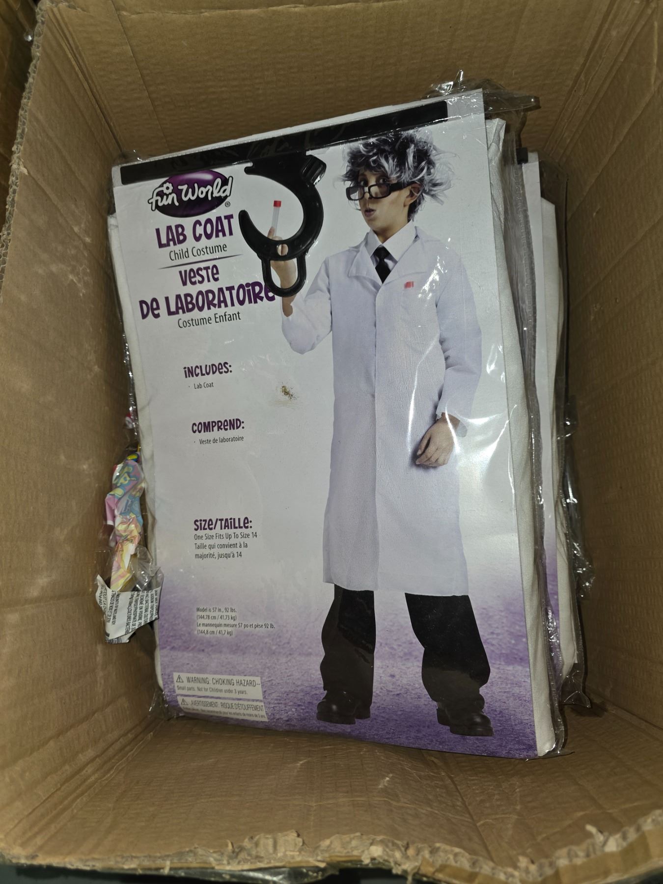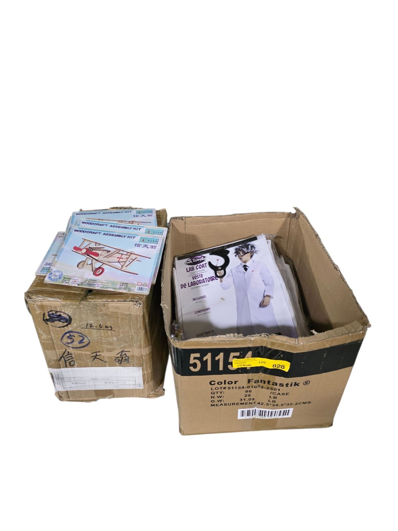 NEW - 2 Boxes of Fun World Lab Coats (approx. 12-pcs) & Woodcraft Plane Assembly Kit (approx. 100 pcs)