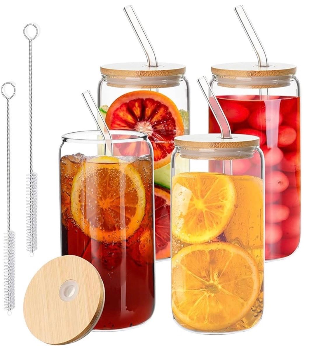 NEW 2-pack of Bamboo Lids Straws Glass Cans - approx. 8 pcs