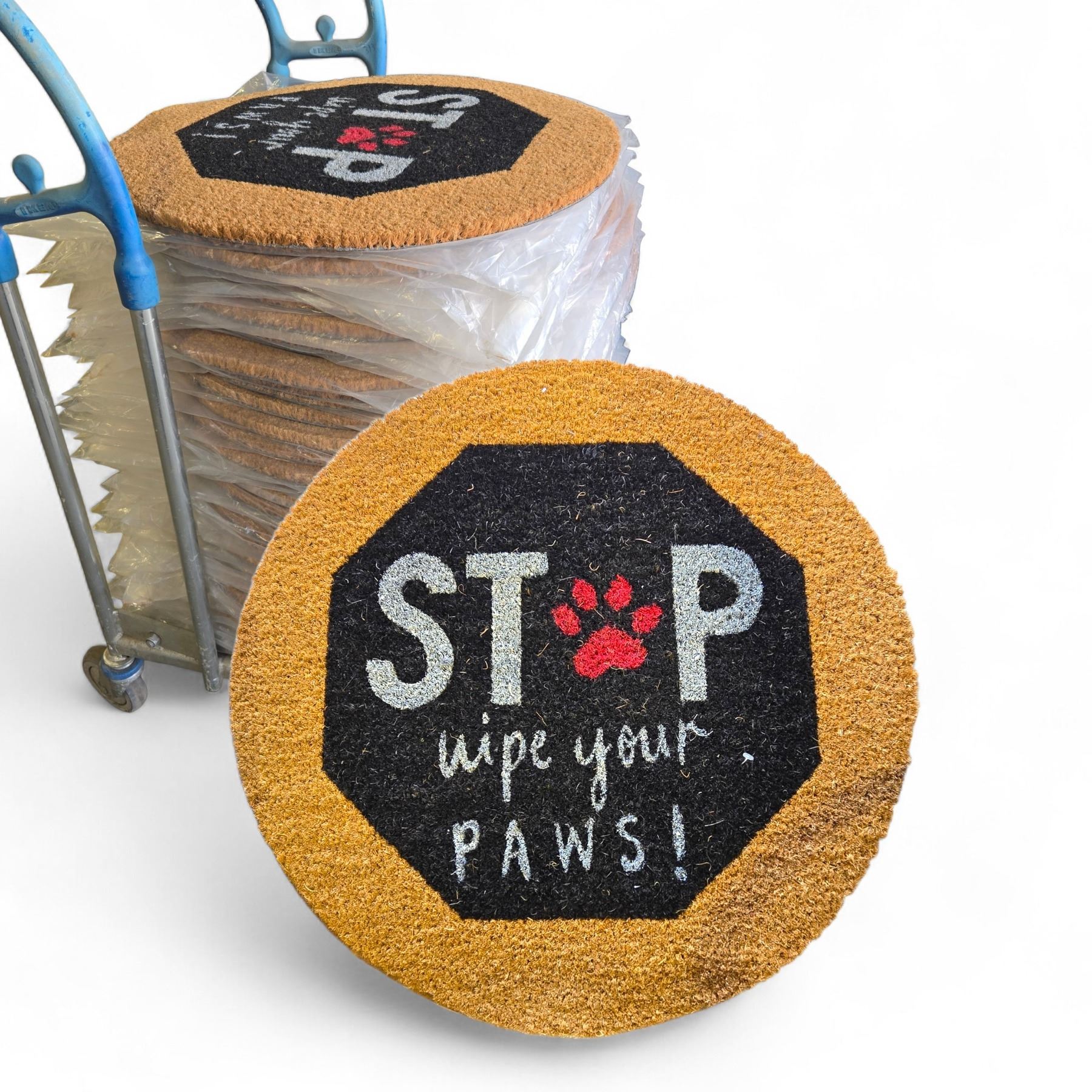 NEW - 4 Cats & Dogs Stop "Wipe Your Paws" Round Entrance Mats - 60cm Round (approx. 25 pcs)