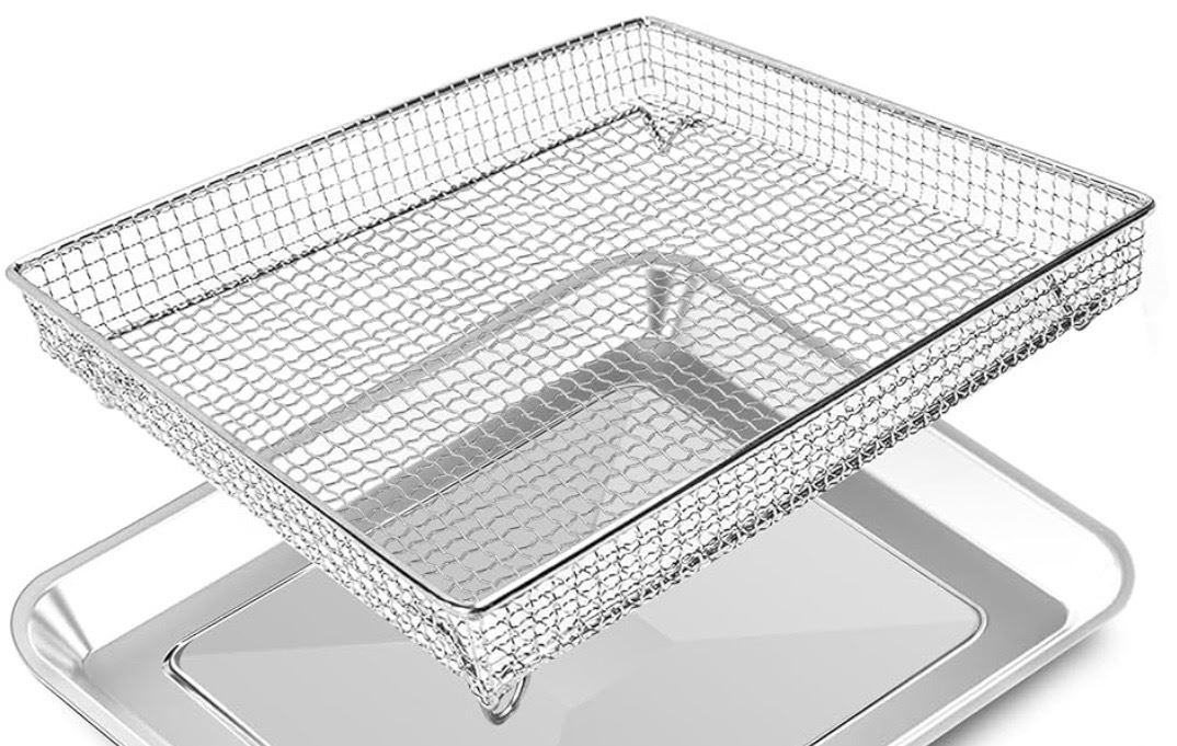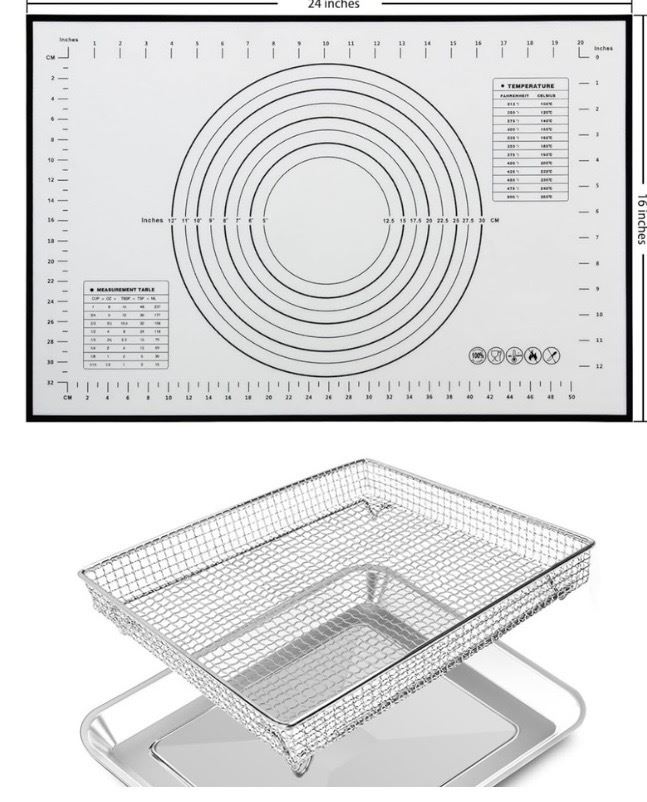 NEW Air Fryer Basket 11.8" x 12.4" & 7 pcs Silicone Pastry Dough Soraper (7 pcs)