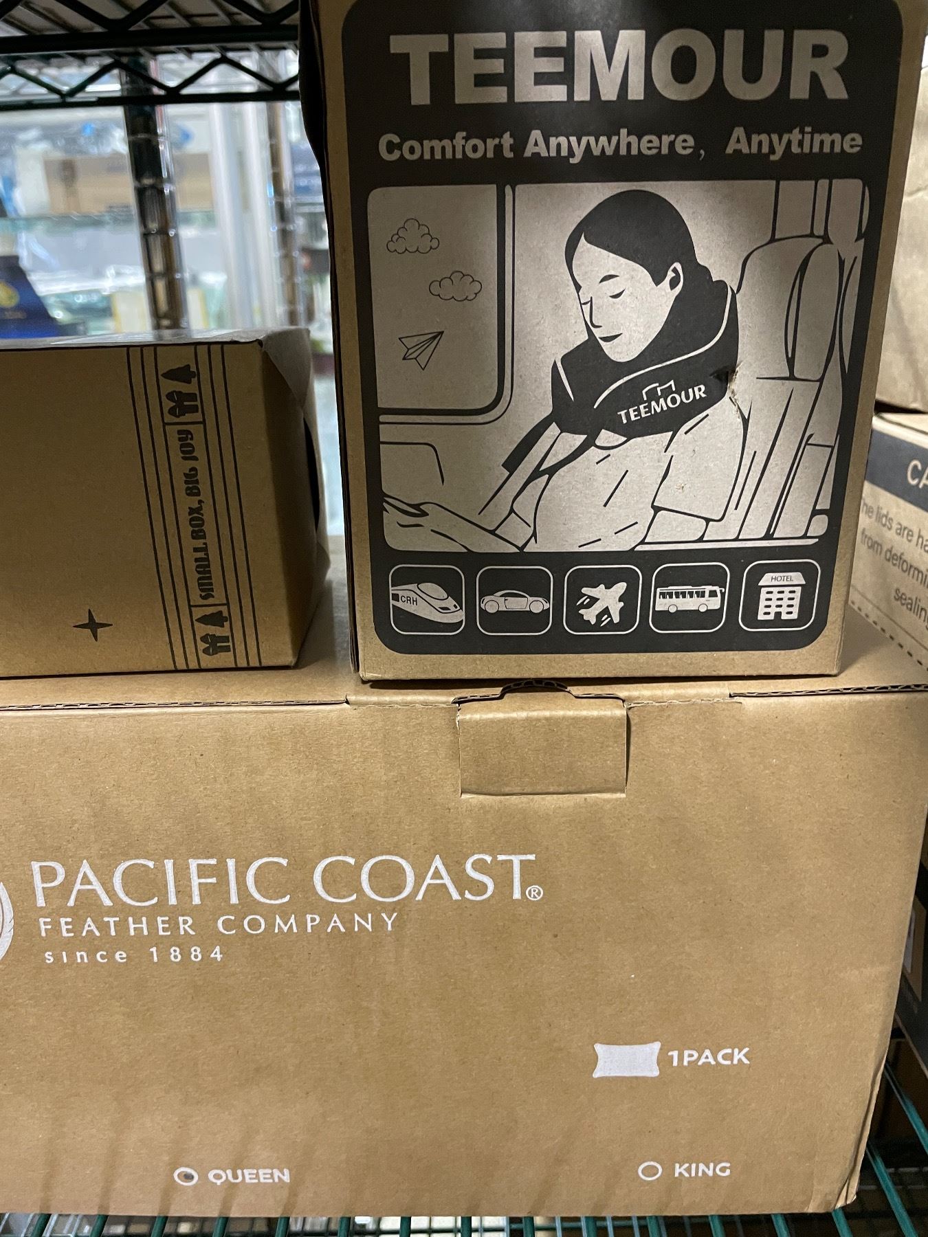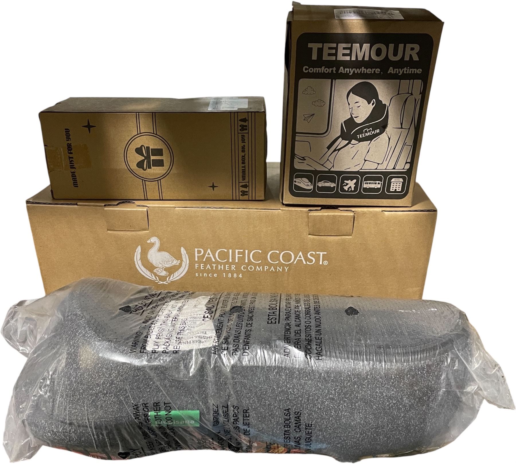 NEW Bedding & Assorted Items - includes Pacific Coast Queen Feather Pillow/Teemour Travelling Neck Pillow & More