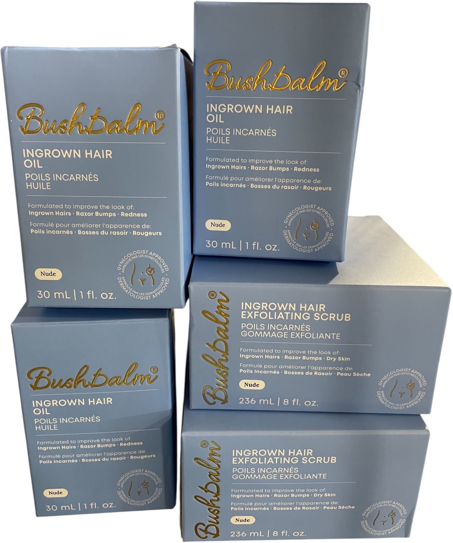 NEW Bush Balm Ingrown Hair Treatment - includes x3 Oil & 2 Exfoliating Scubs (Total R.V. $168)
