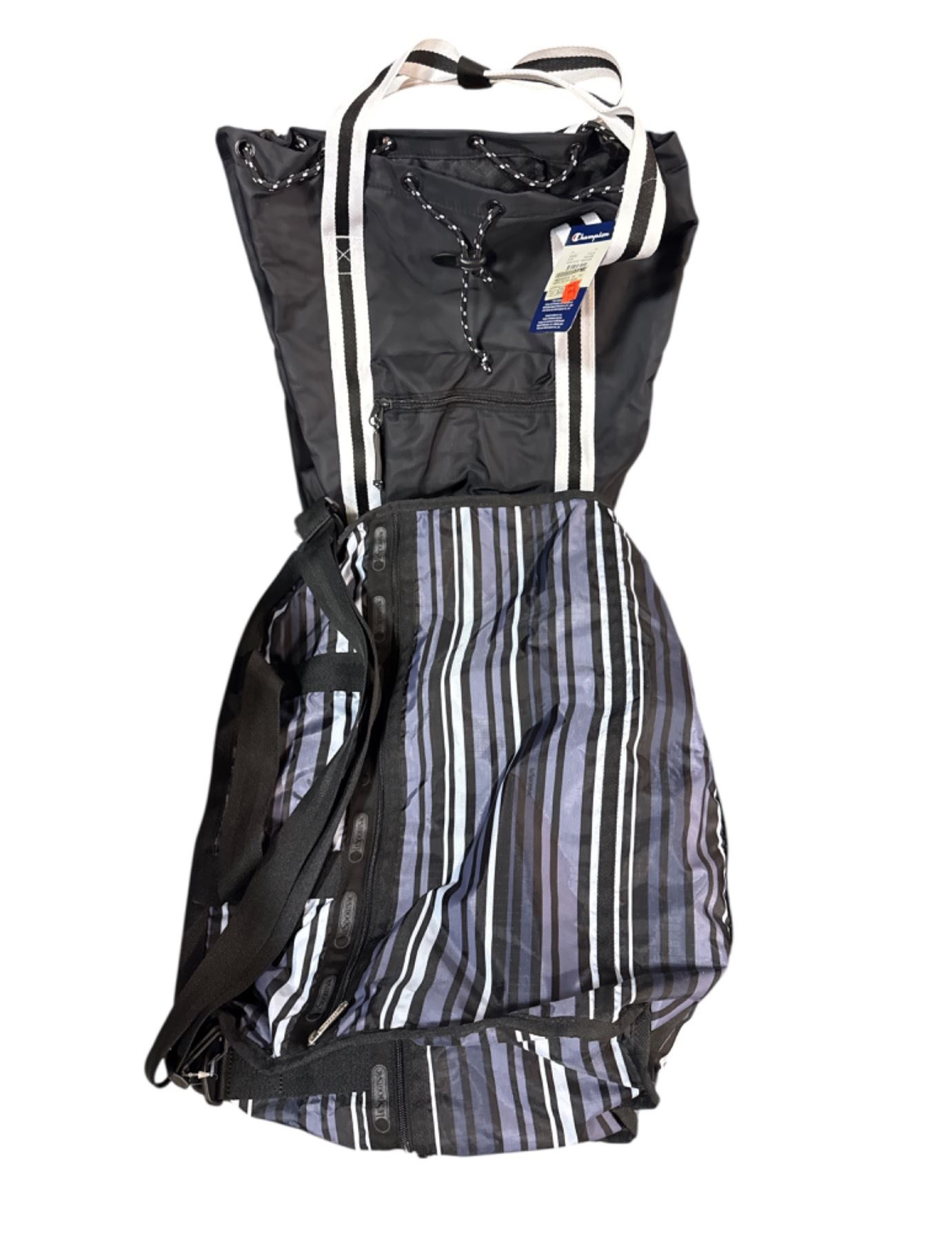 NEW Champion Black Strips White Backpack & LeSportSac Weekender Bag - Total R.V. $238