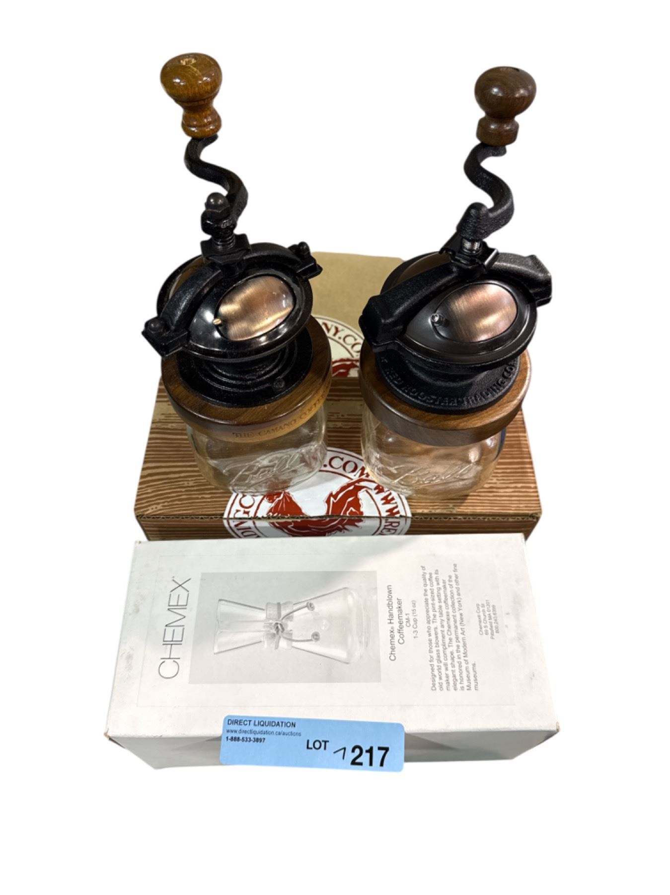 NEW Coffee Set - includes 2 Vintage Manual Grinders/ Chemex Handblown Glass Coffee Maker