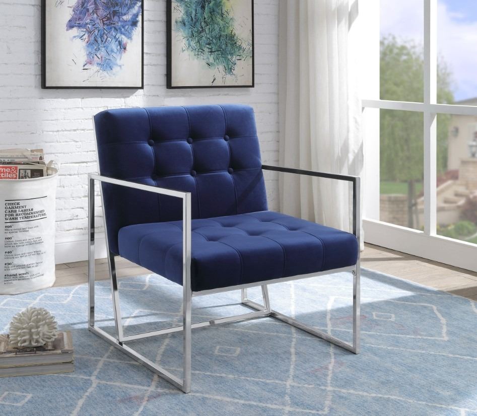 NEW - Delia Collection Chrome & Blue Accent Chair, R.V. $209 (4405NV)