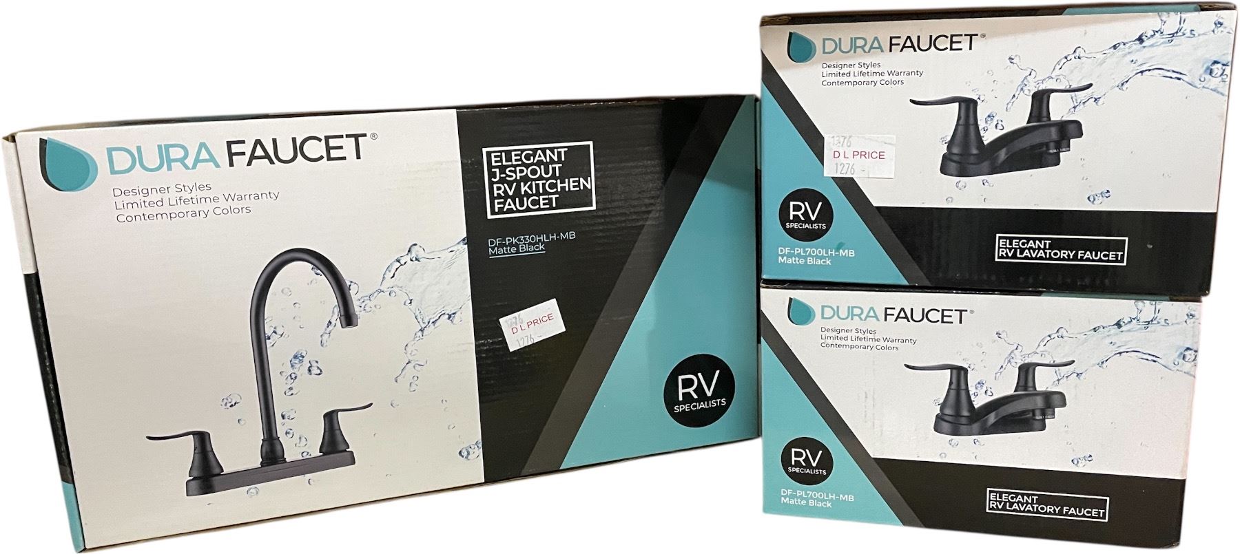 NEW Dura Faucet Elegant Matte Black RV. Lavatory Faucet (2 pcs) & J-Spout Kitchen Faucet
