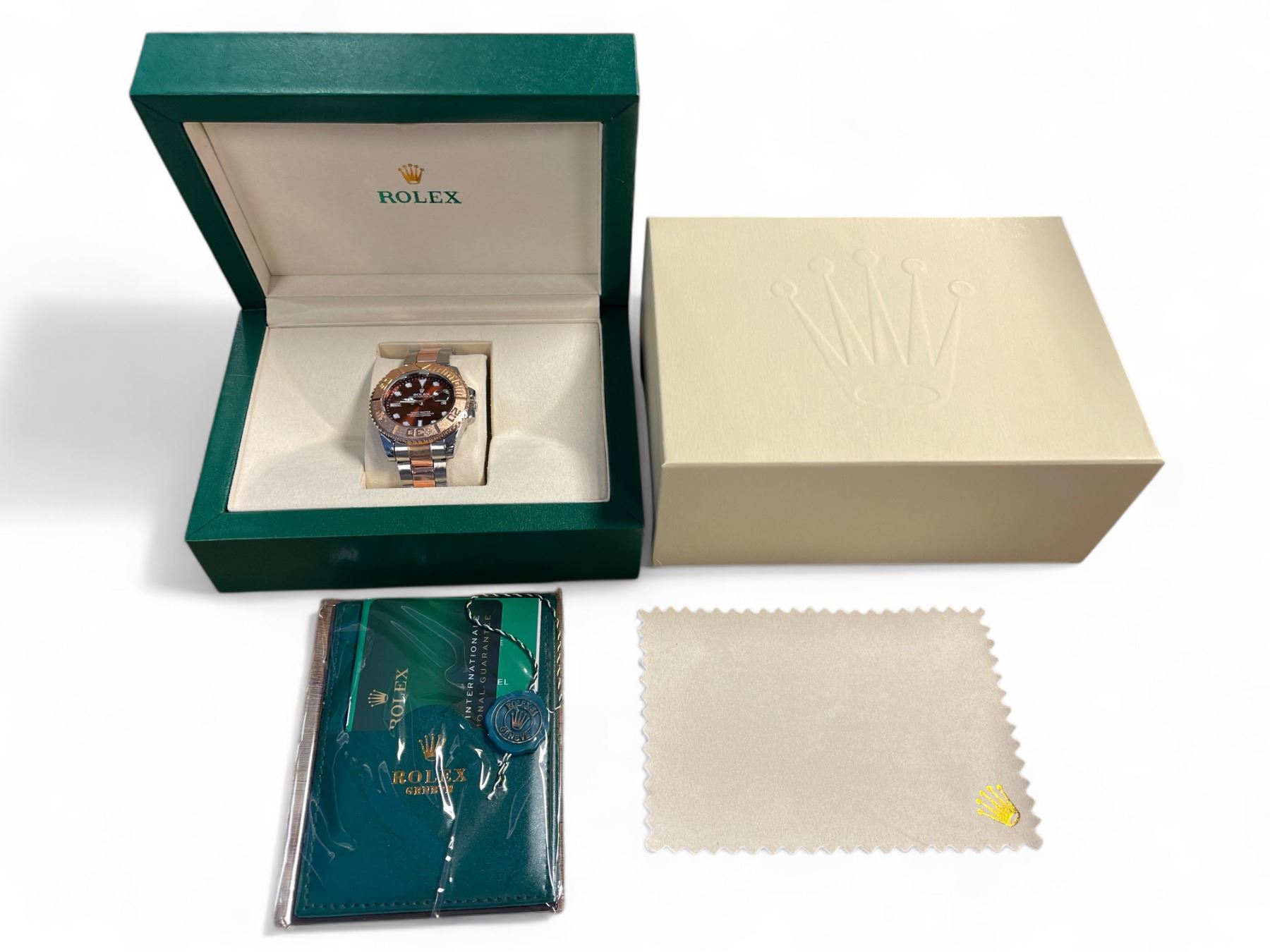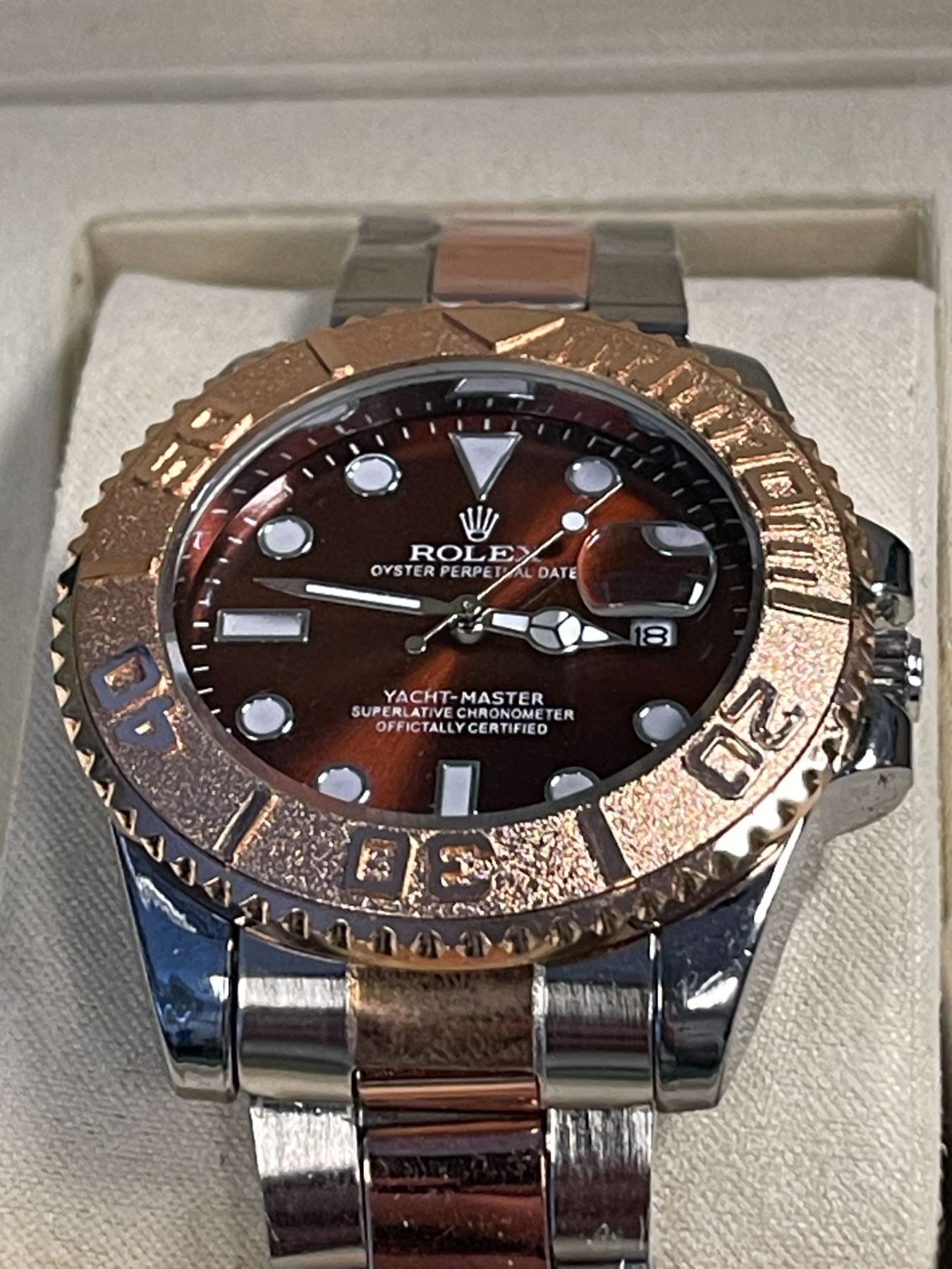 Grade B Homage to Rolex Yacht Master 2-Tone Stainless Steel Watch with Oyster Bracelet - Dark Chocolate Dial with Copper Bezel - Grade B - Complete with Case