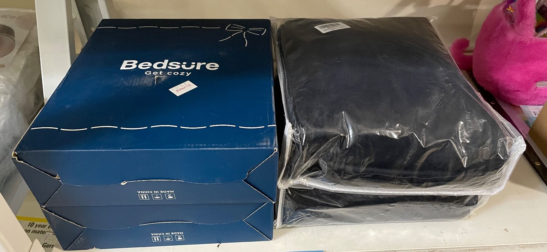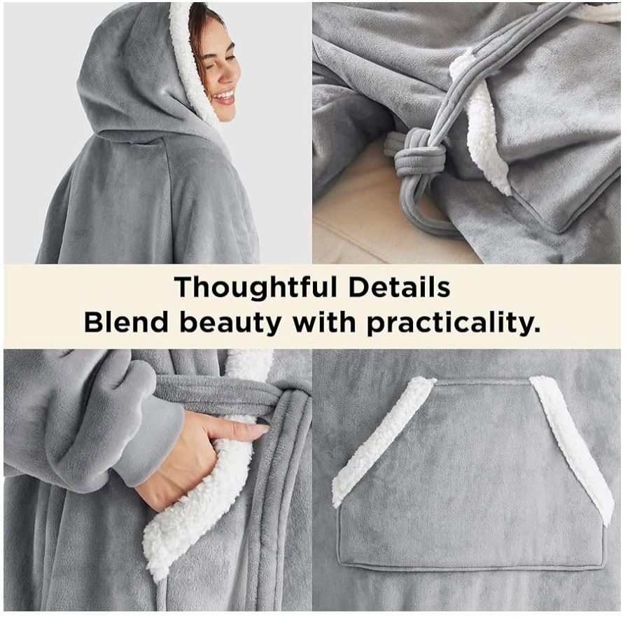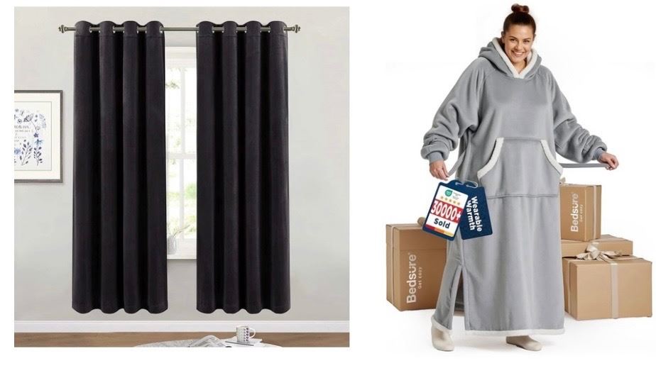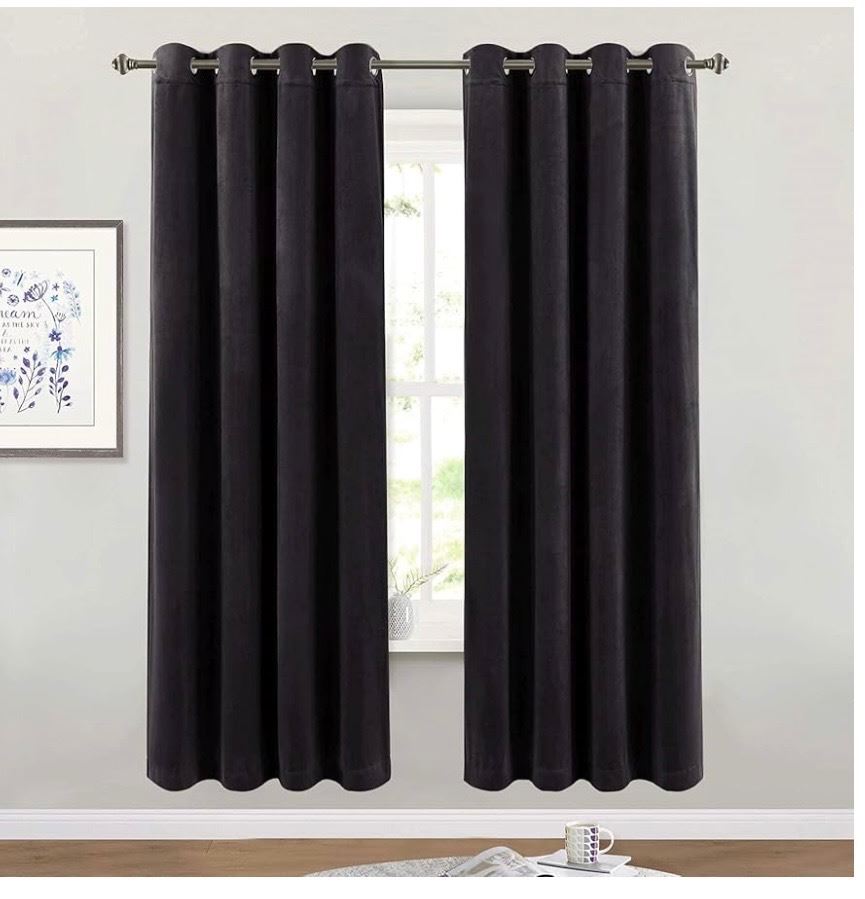 NEW Group of 2 Bedsure Long Sherpa Grey Blankets (52" x 31") & x2 Black Velvet Curtains