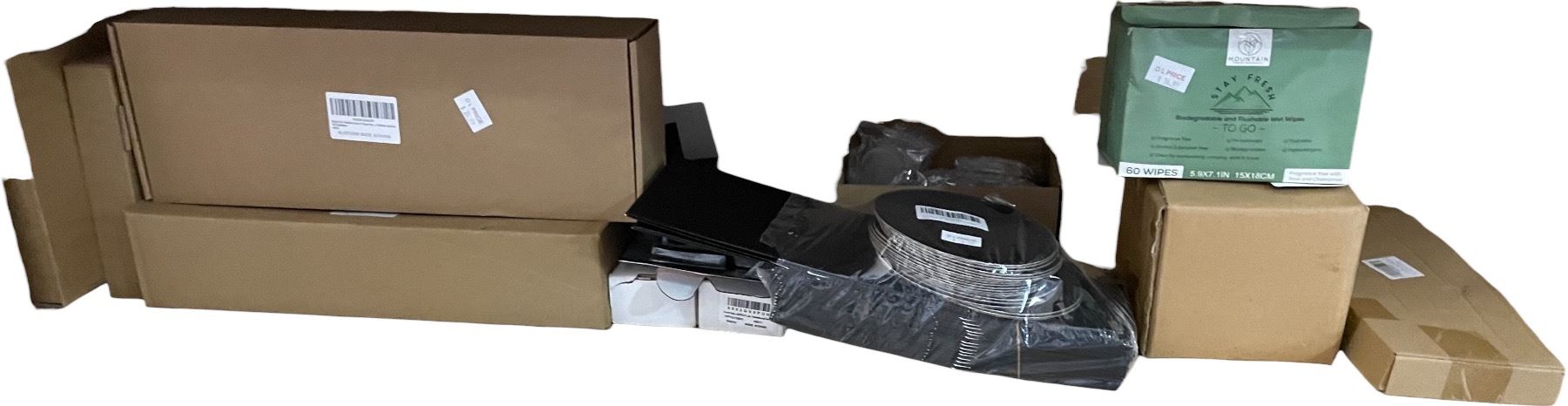 NEW Group of Assorted Boxes - includes 2-pack of Rubber Roof Patching/Starlink Mount Internet Kit:Bike Brake Pads & More