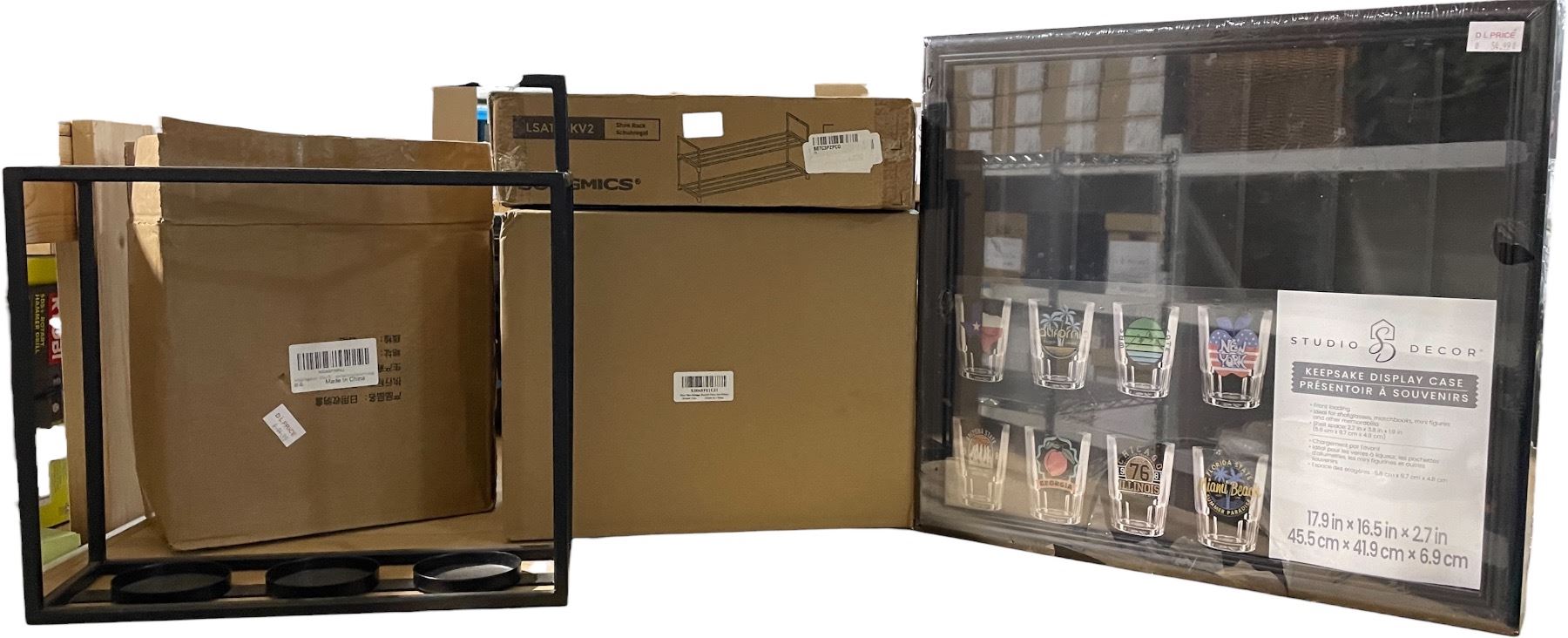 NEW Group of Assorted Decor & Storage - includes Studio Decor Black Keepsake Display Case/Shoe Rack/