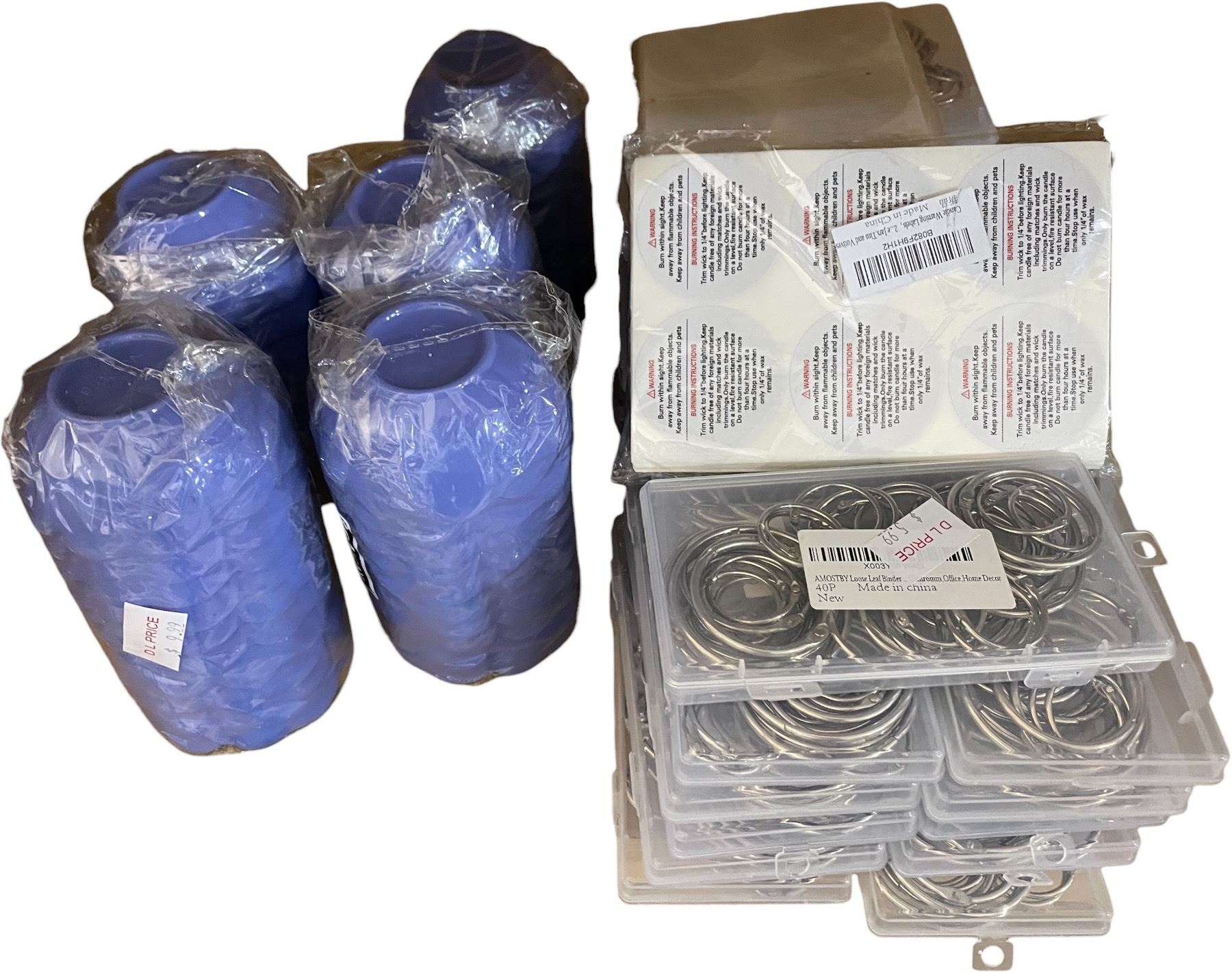 NEW Group of Assorted Items - includes 5-packs Rowcay Purple Mask Bowl Flower & Large Group of 4à pcs Loose Leaf Binder
