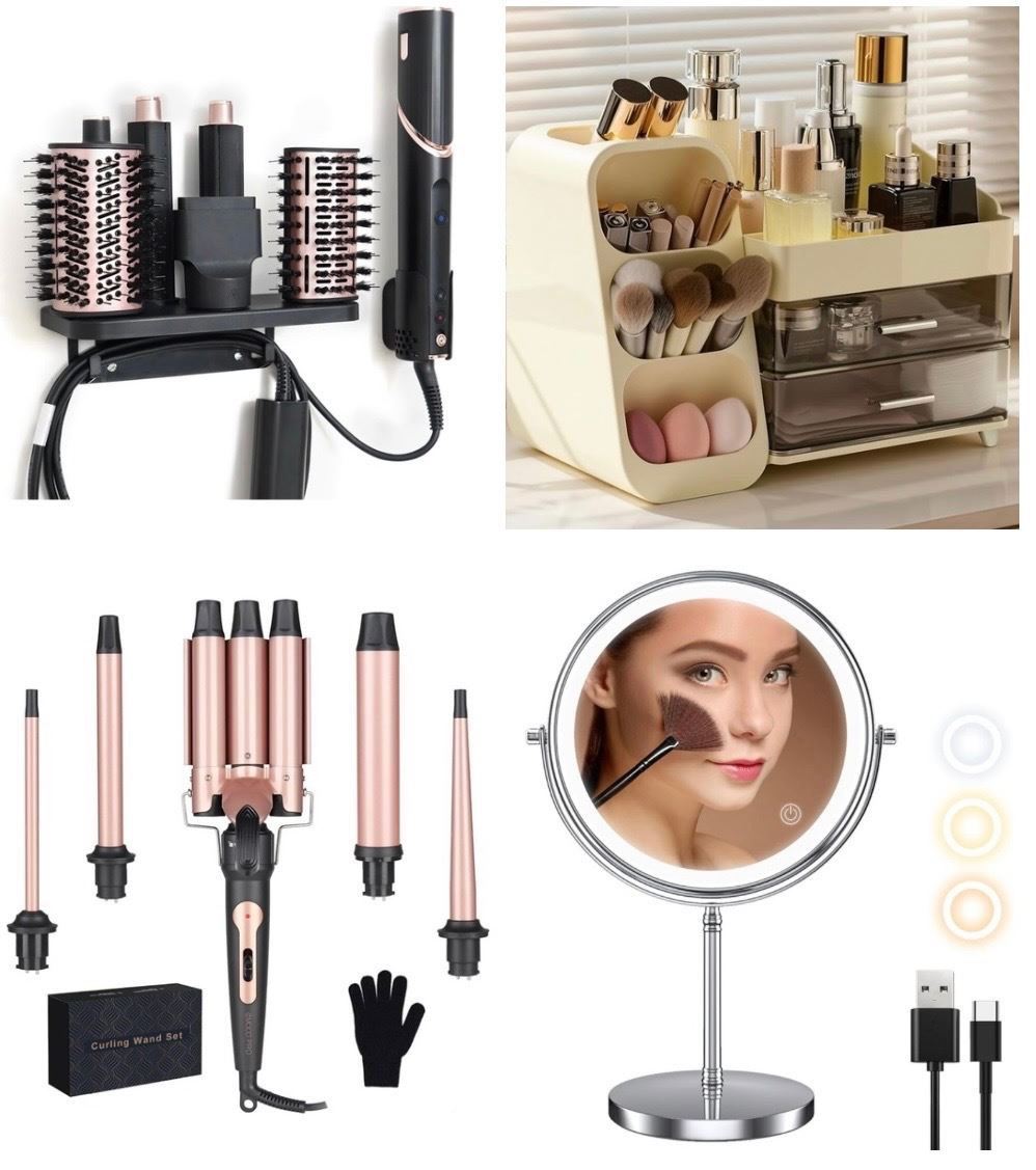 NEW Hair & Makeup Storage Accessories - includes Hair Curler/ x5 Wall Mounted Organizers/ Makeup Organizer & More