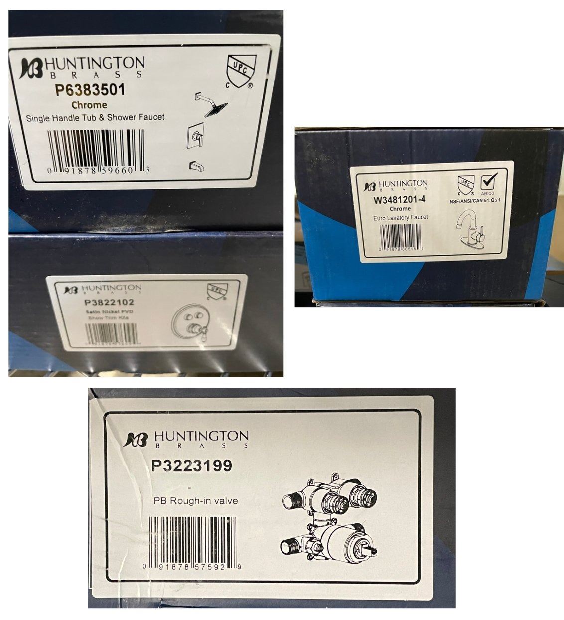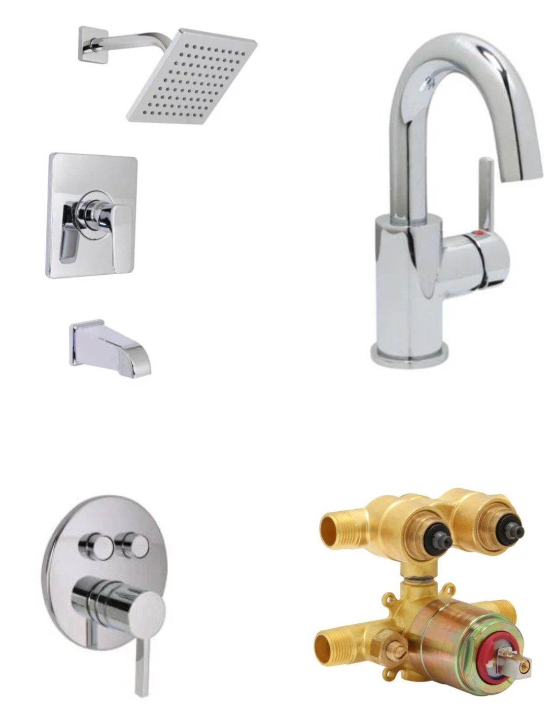 NEW Huntington Group of 3 EU Lavatory Faucet Chrome/Single Handle Tub Shower Faucet/Satin Nickel PVD & PB Rough-in Valve & More