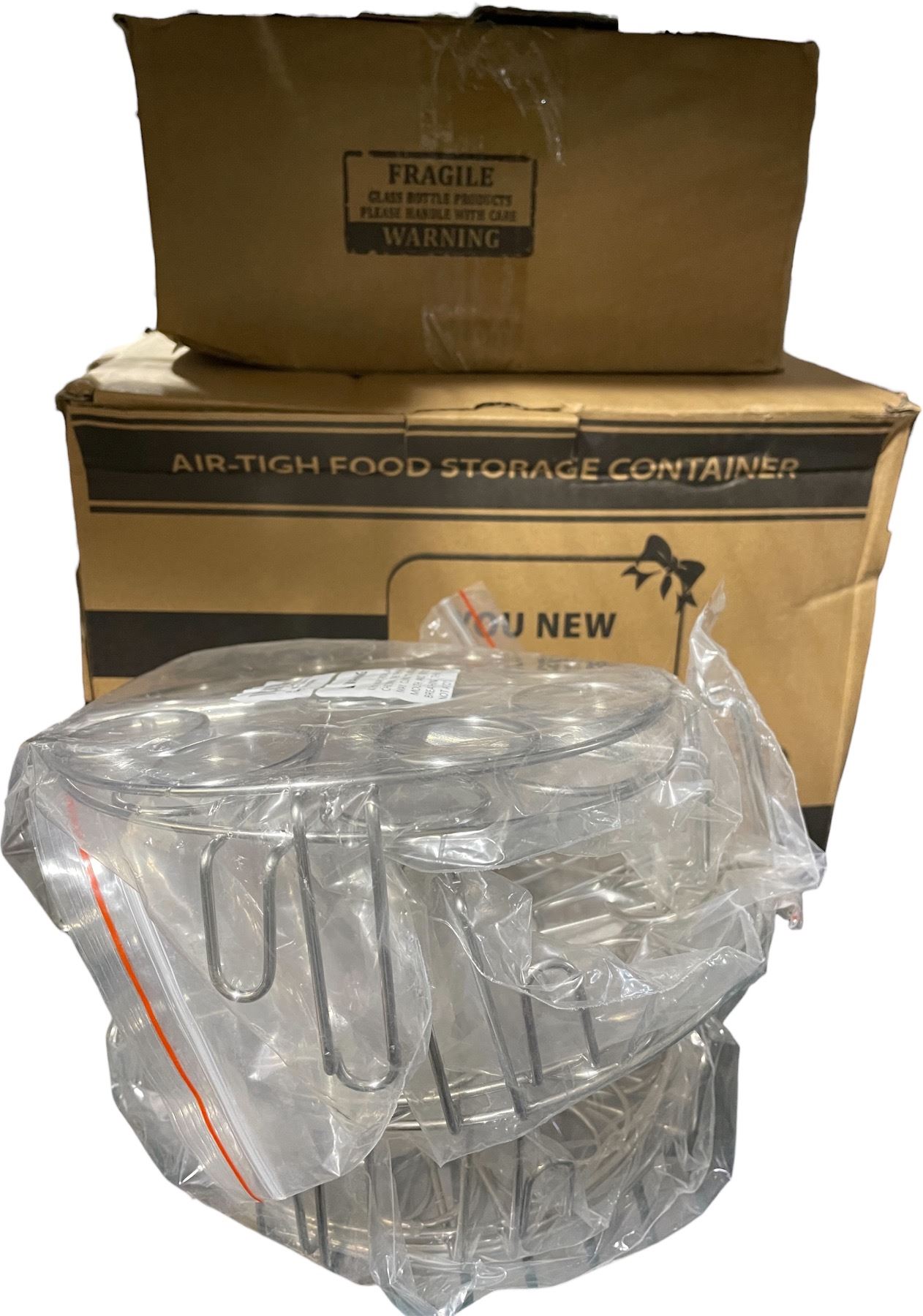 NEW Kitchen Storage Supplies Items - includes Airtight Food Storage Container Kit/ Glass Bottles/ x3 Egg Steamer Racks