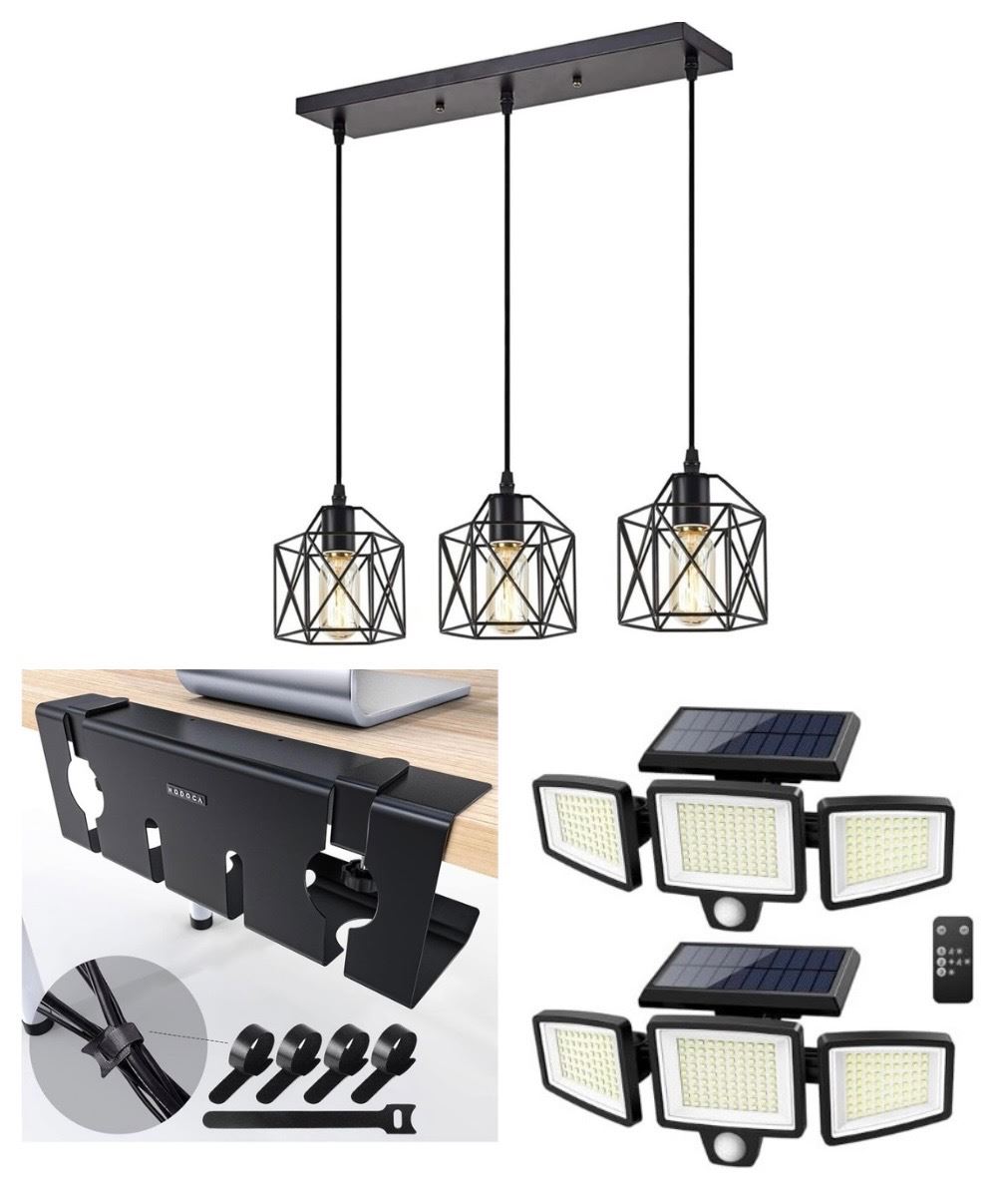 NEW Modern 3-Pendants Lights/x2 Cable Tray Organizer & Solar Motion Outdoor Sensor