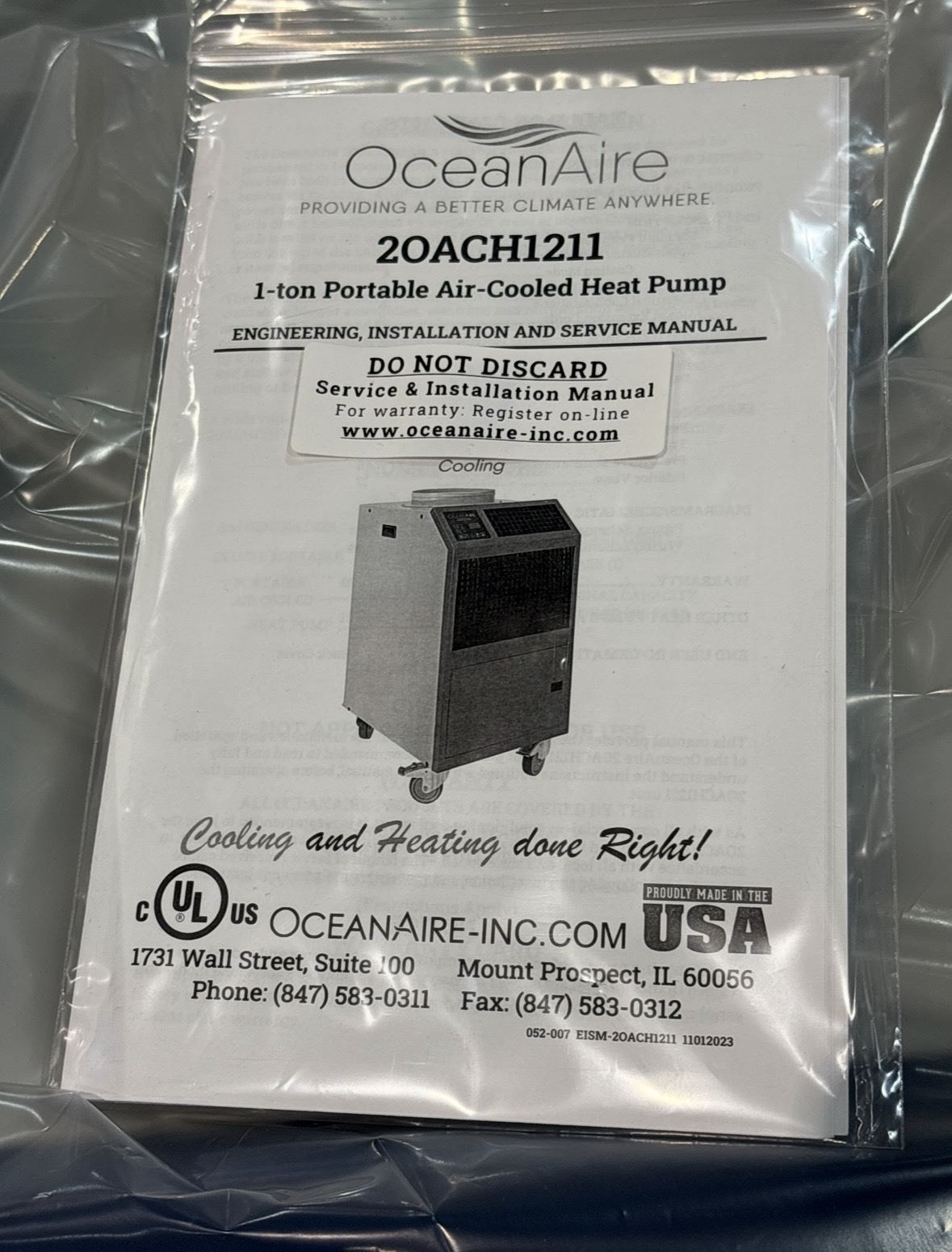 NEW OceanAire 20ACH1211 1-ton Portable Air-Cooled Heat Pump - new in box MSRP $6,000