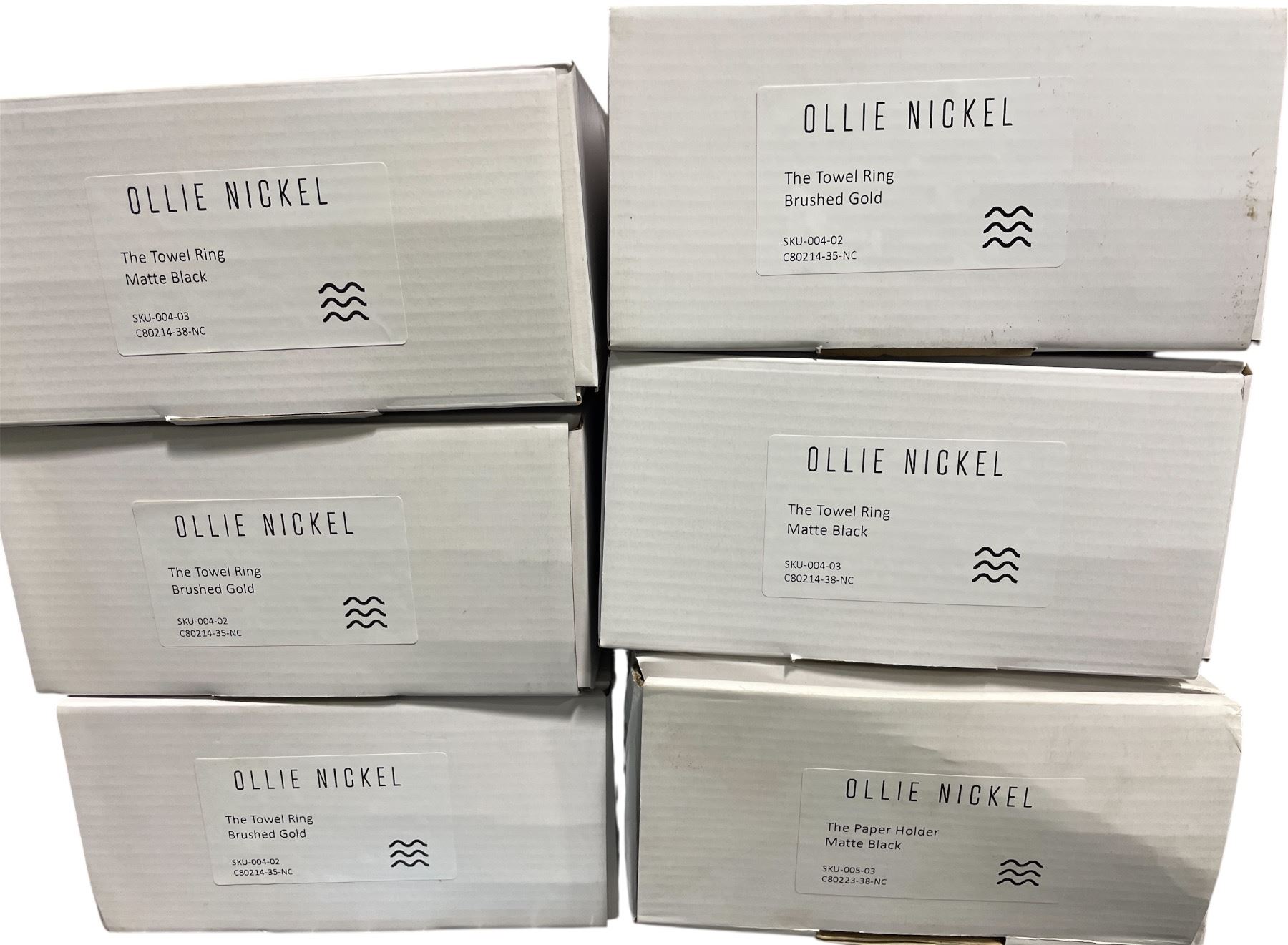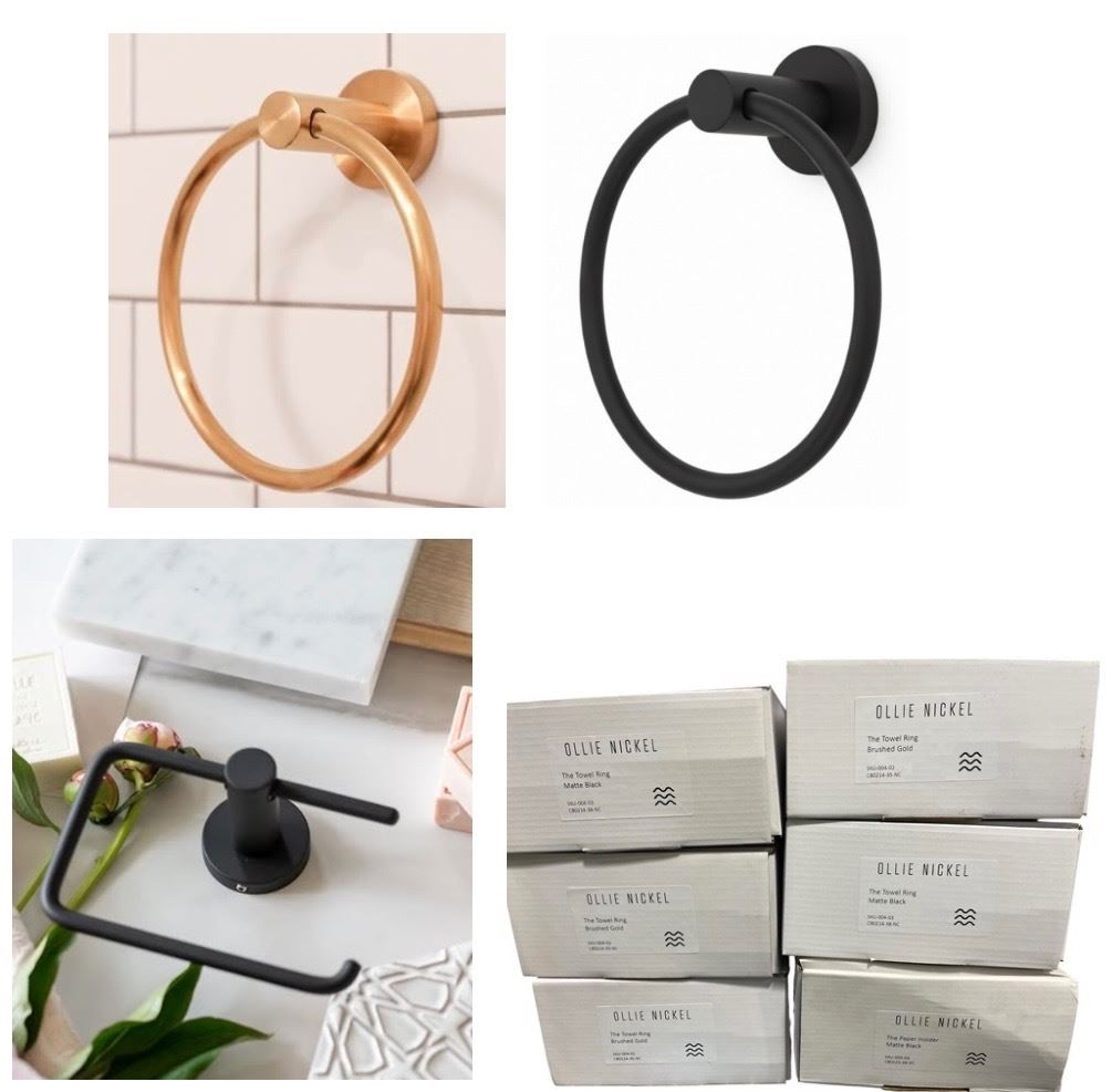 NEW Ollie Nickel Towel Rings & Paper Holder Matte Black - includes x3 Brushed Gold Rings & x2 Matte Black