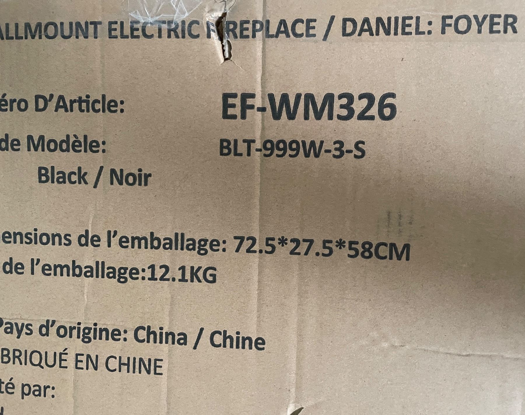 NEW Paramount Daniel Black 24" Electric Fireplace, Model EF-WM327