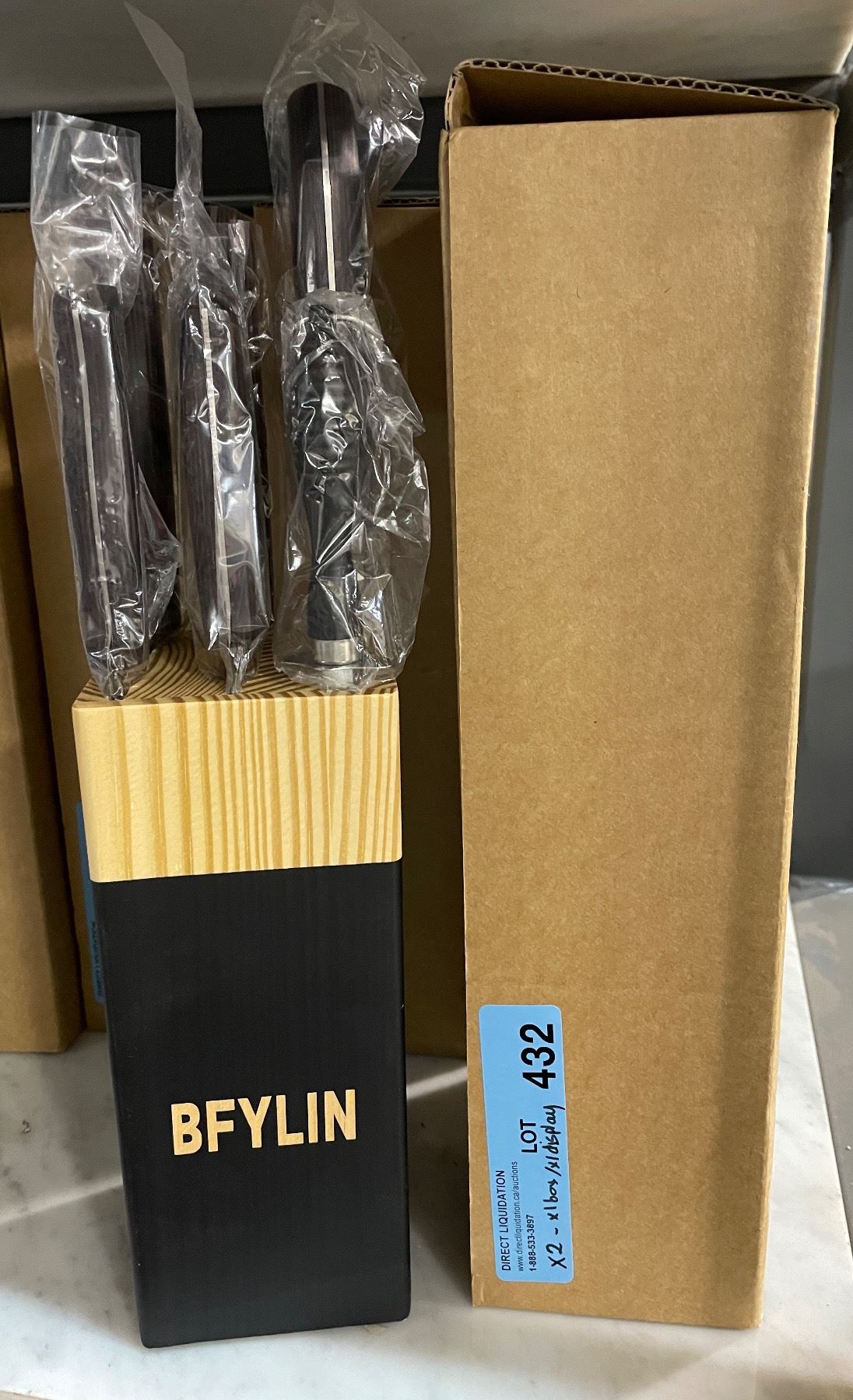 NEW Set of 2 7-pcs Wood & Black Stainless Steel Chef Knife Set - One in Display
