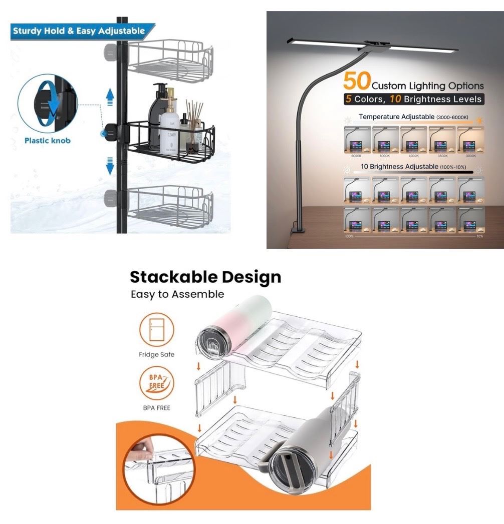 NEW Tension Cormer Shower Pole Caddy/Water Bottle Organizer & LED Desk Lamp