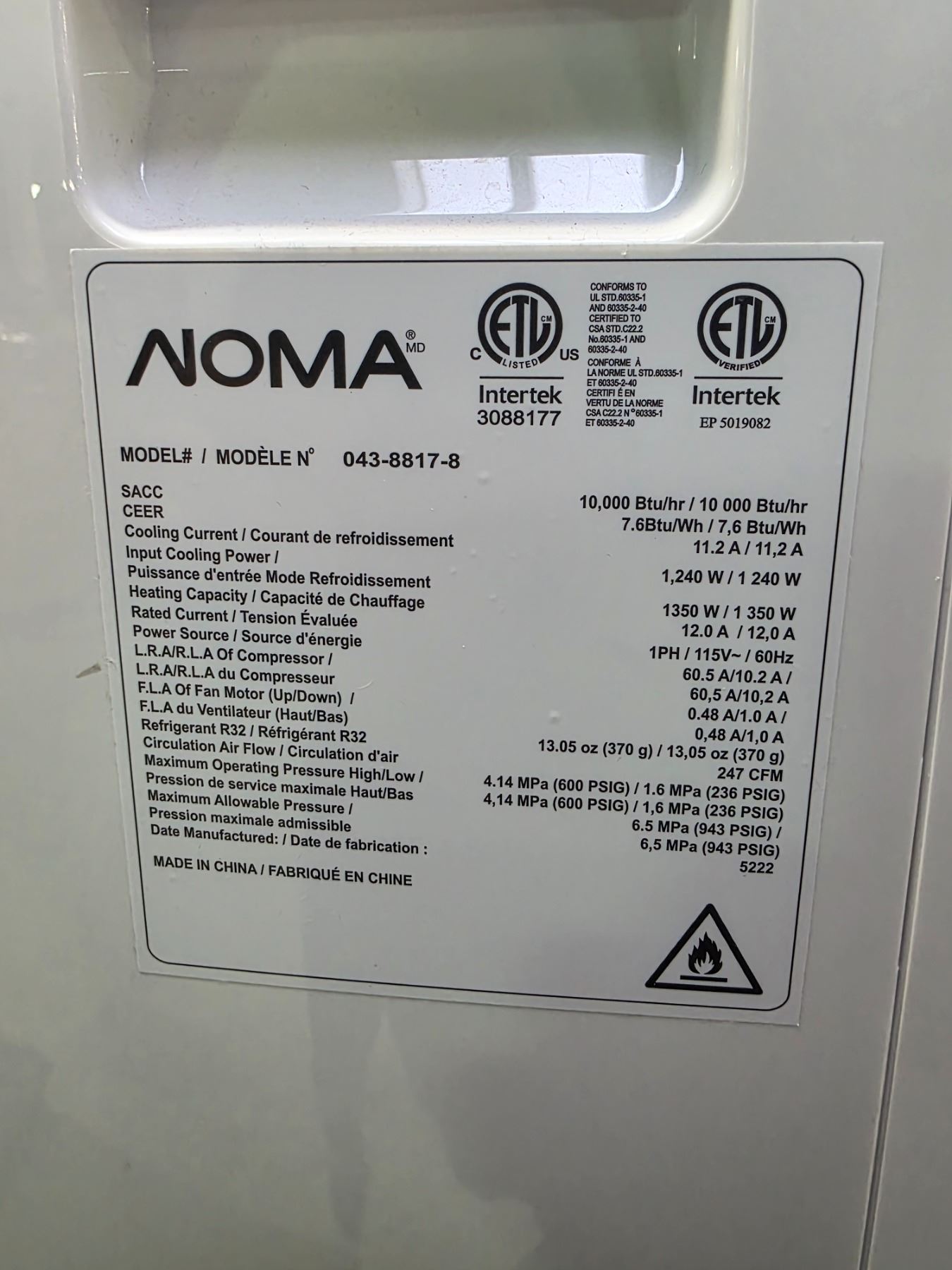 NOMA Portable Air Conditioner with Vent Hose & Accessories