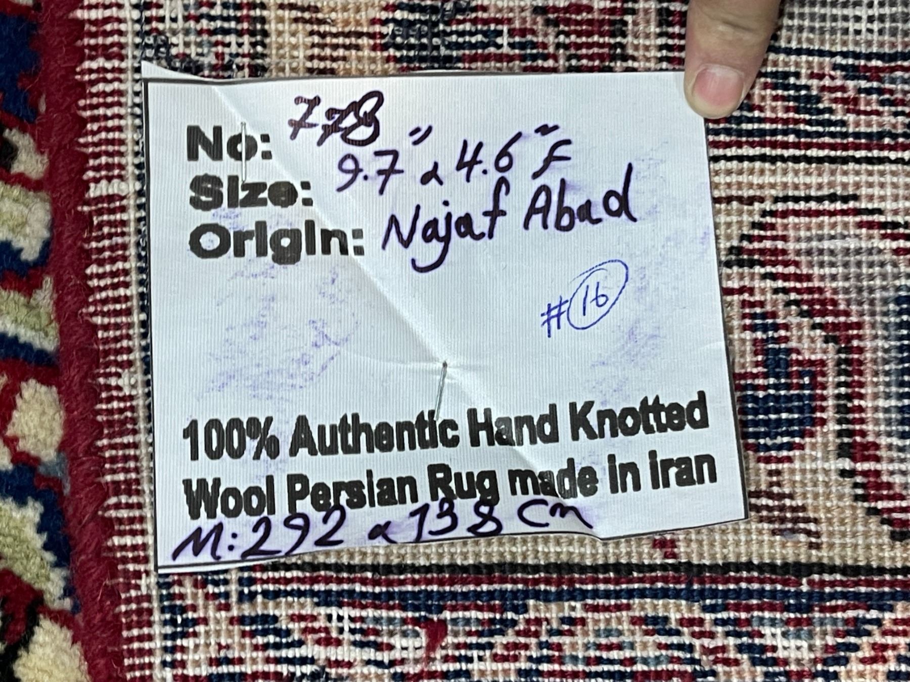 Najaf Abad 100% Authentic Hand Knotted Wool Persian Rug Handmade in Iran (M:292x138cm)