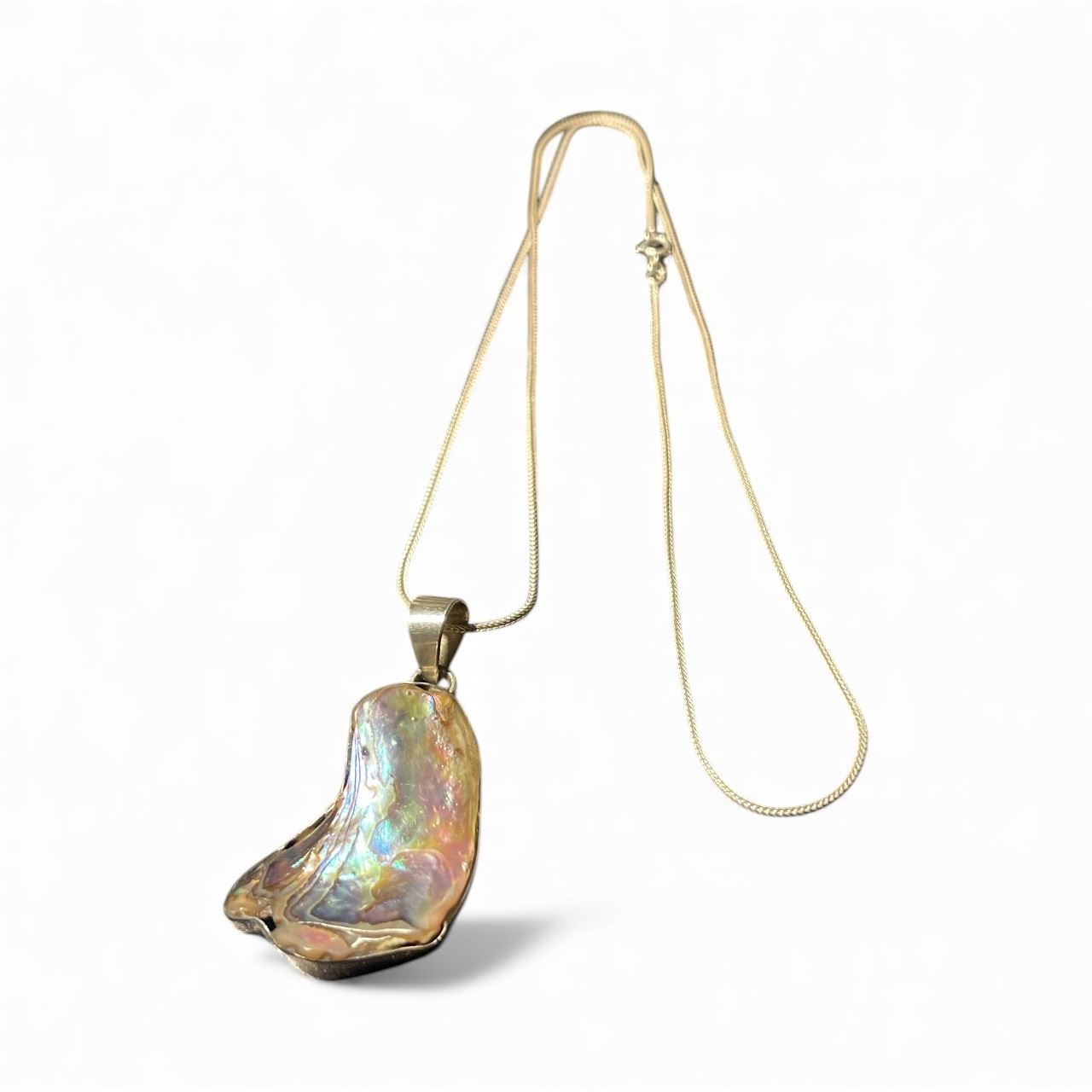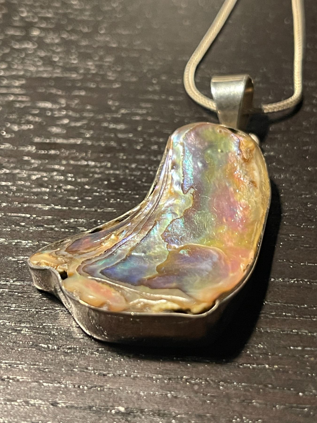 Natural Abalone Pendant Set in Sterling Silver on a 22" Sterling Chain - Pendant is 1.25" x 2" - Total Weight: 16 grams