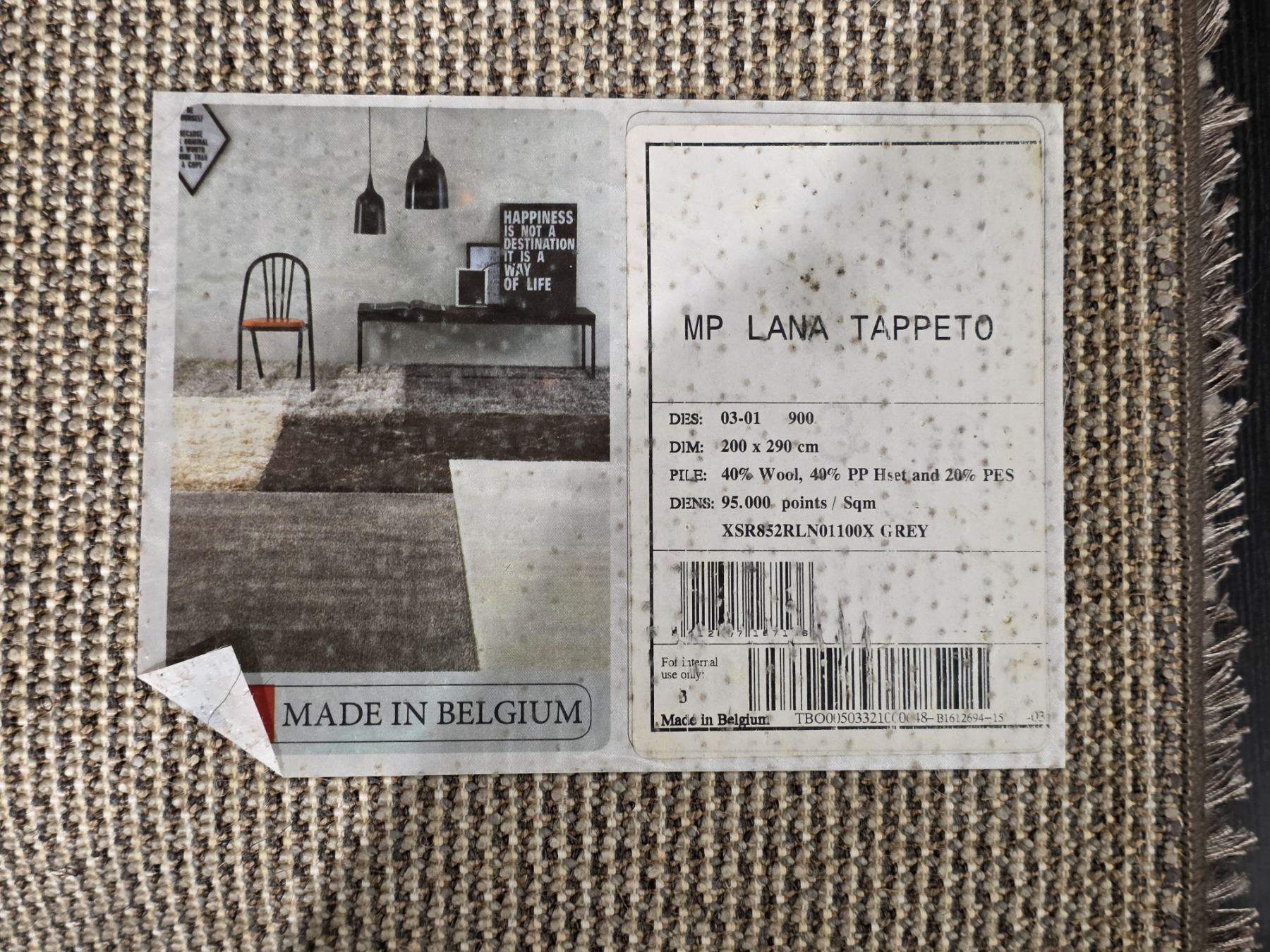 Natuzzi - New Grey Lana Rug - RV: $1274 - Made in Italy - 78" x 115" (NAGA609)