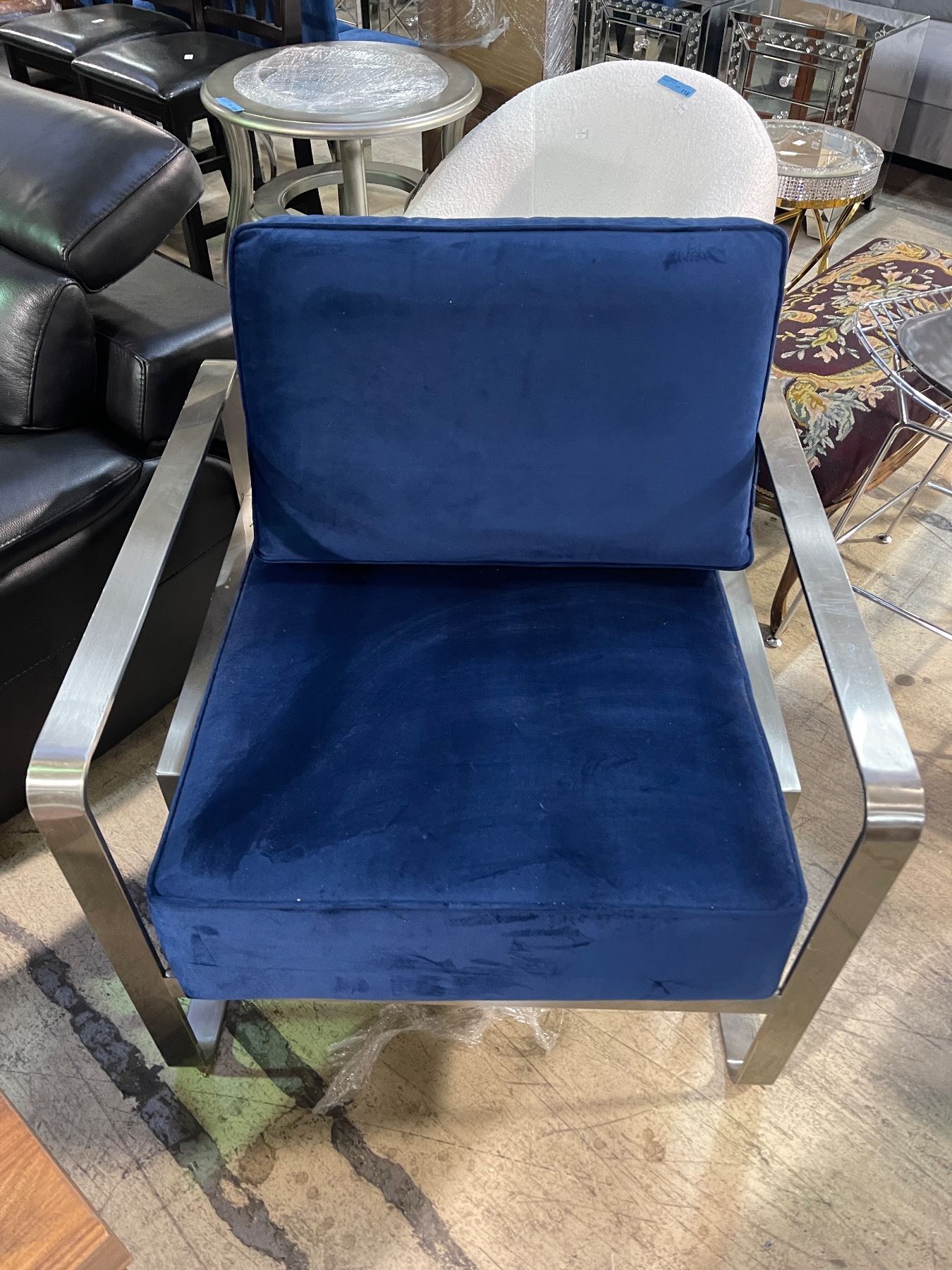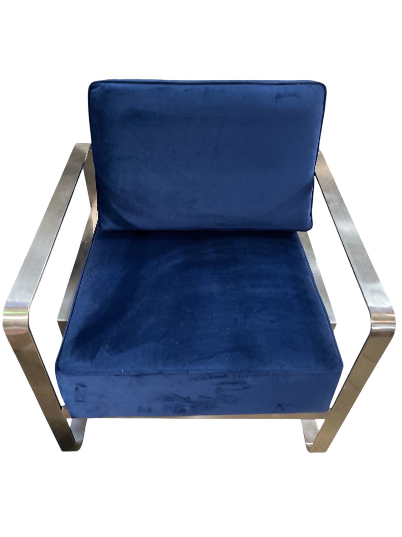 Navy Velvet Accent Chair with Stainless Steel Frame, Approx. H35" x W31" x D30"