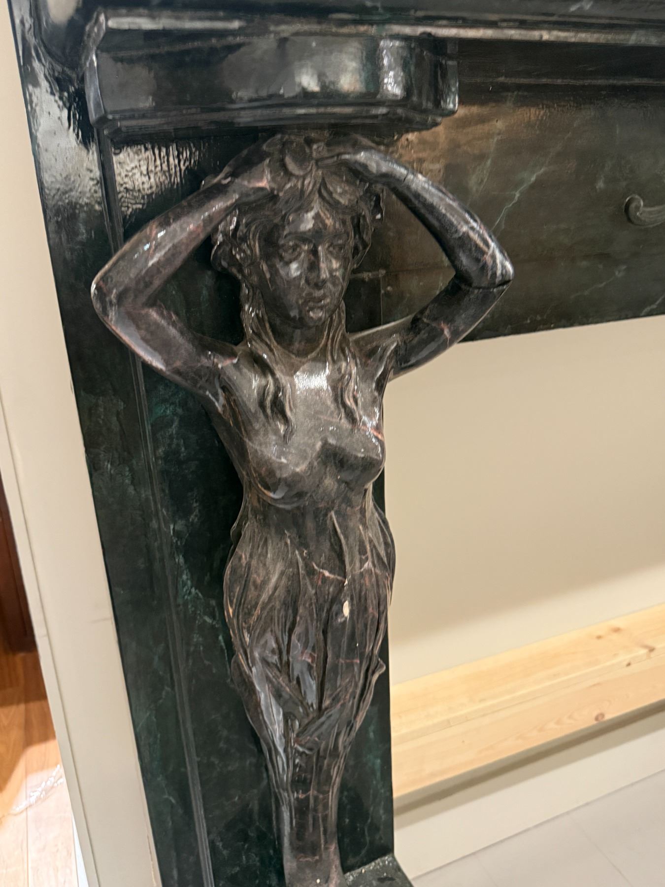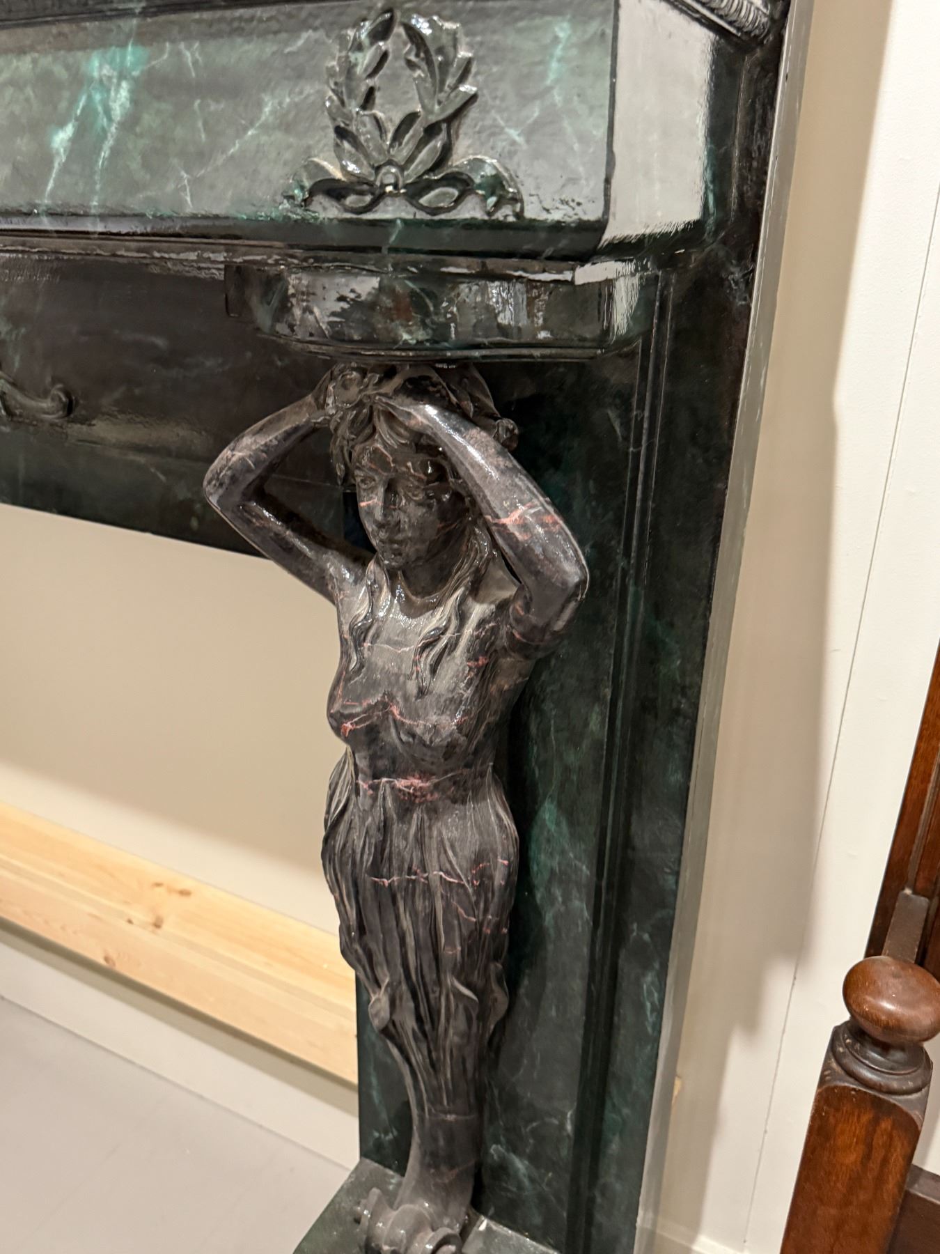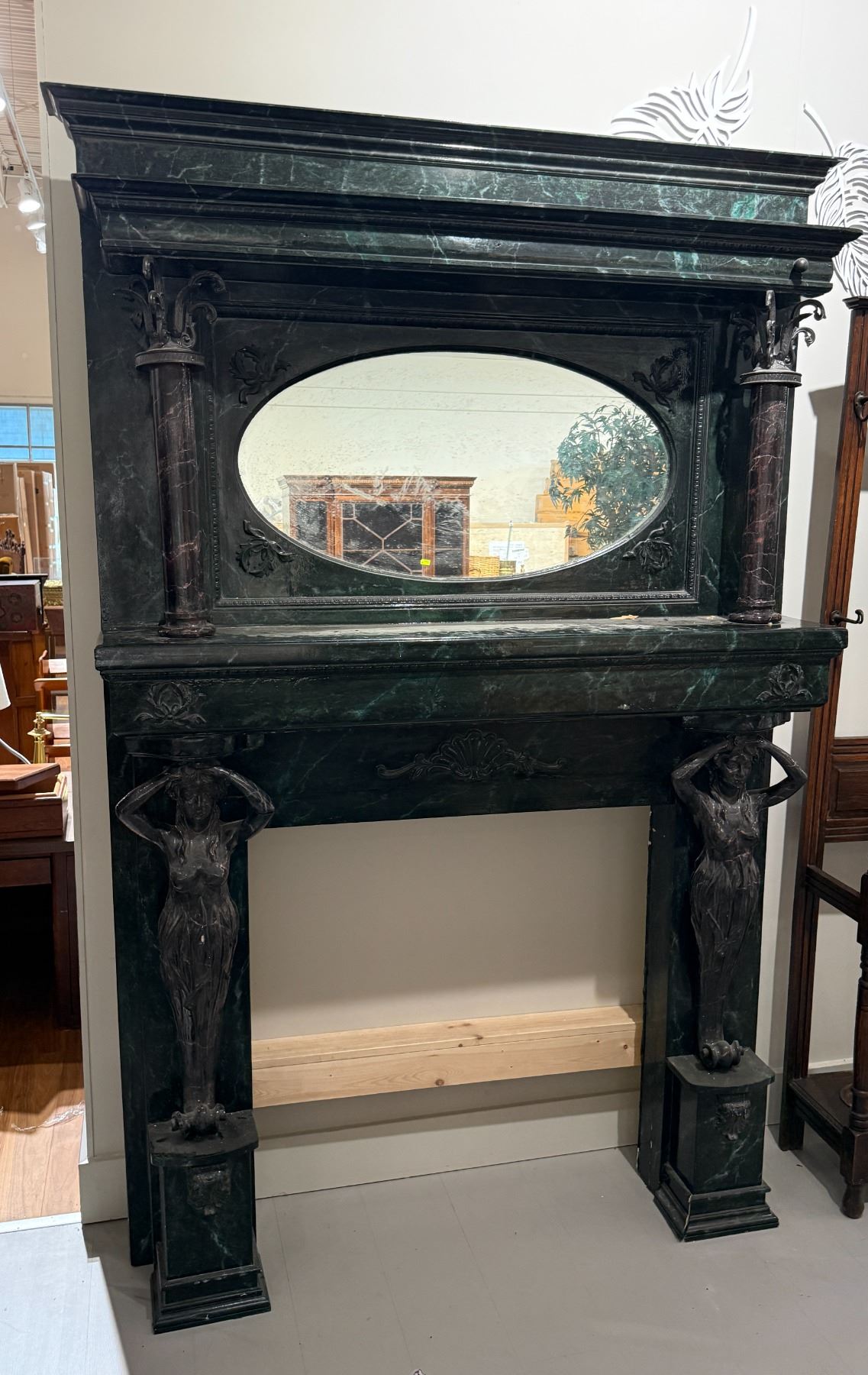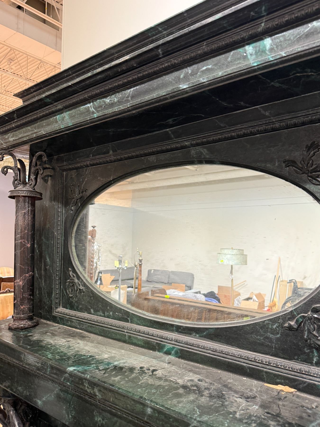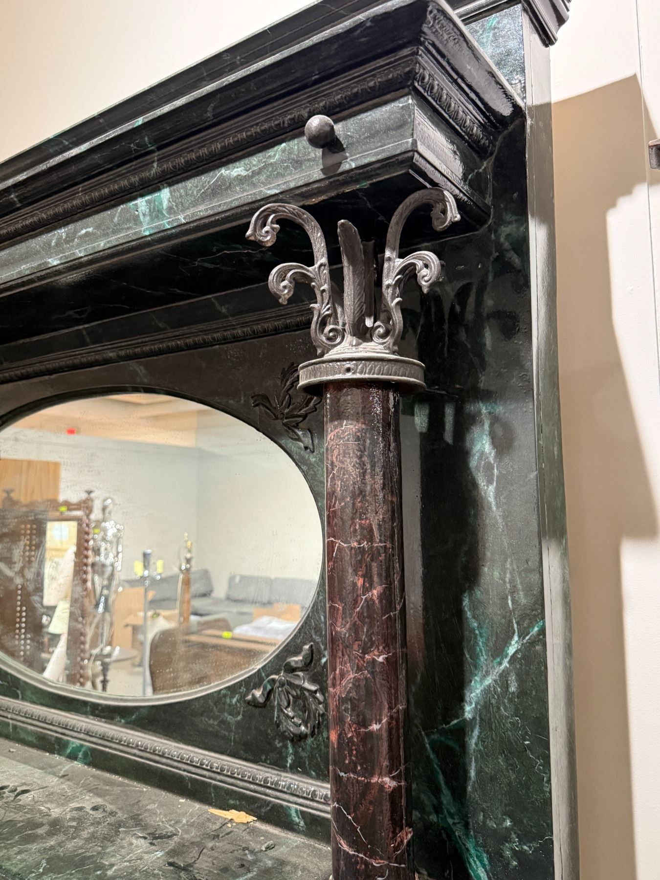 Neoclassical Mirrored Fireplace Surround * Painted in a faux marble pattern (13" x 56" x 95" tall) * Needs a little love
