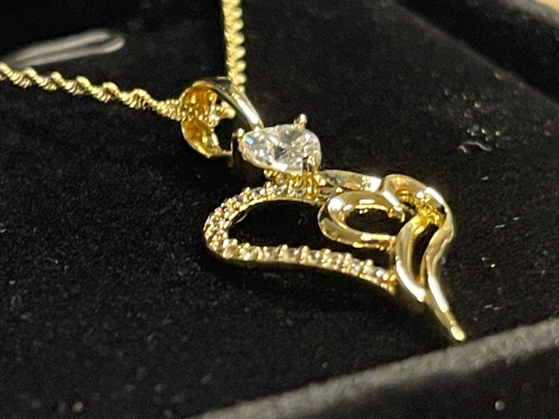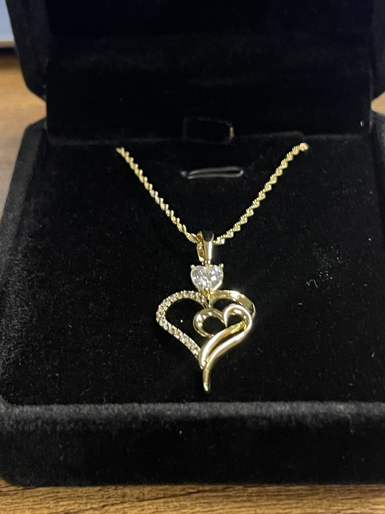 New 14k Gold Plated 0.5ct Heart Cut Simulated Diamond (CZ) Double Heart Necklace - Chain 18" Long w/Case