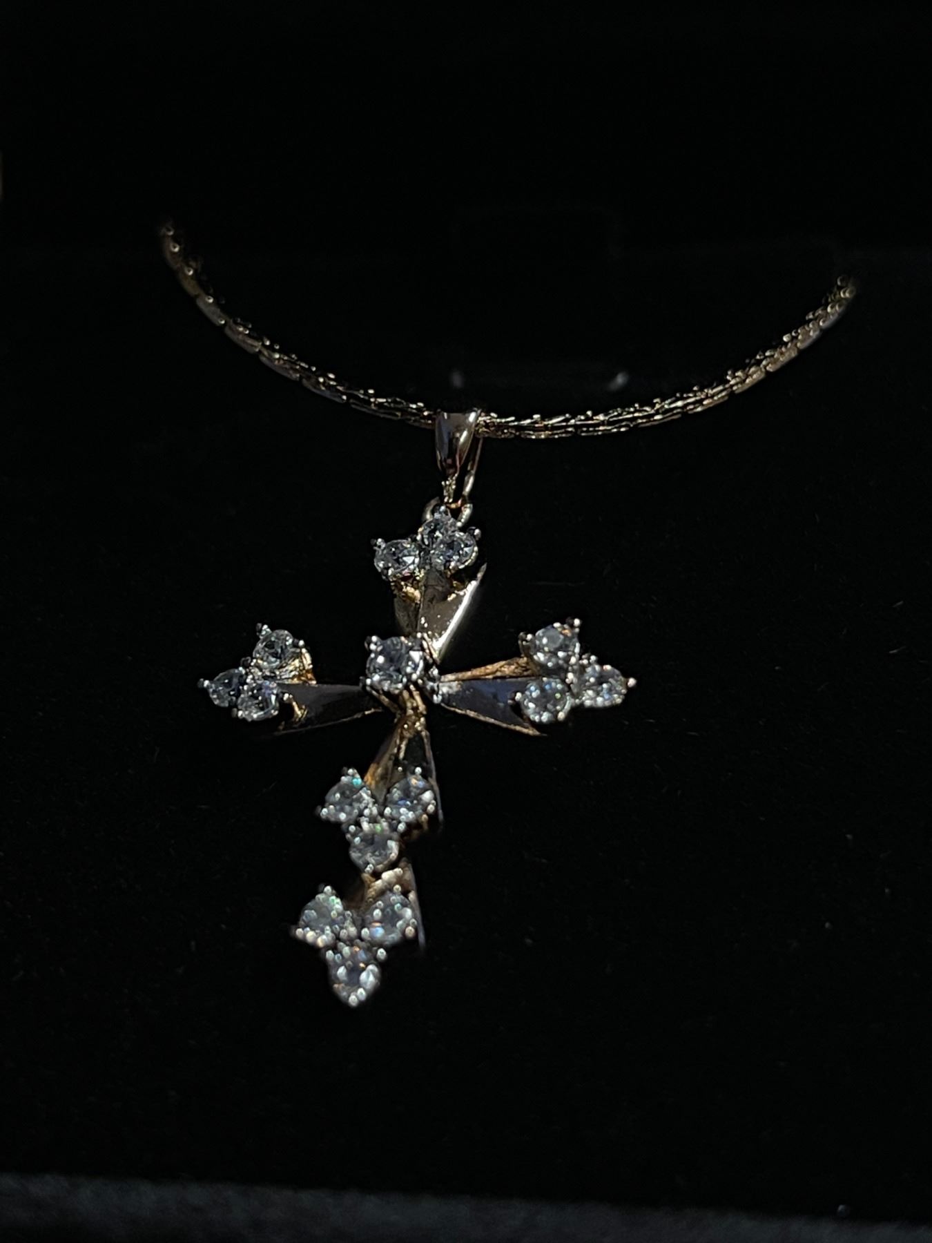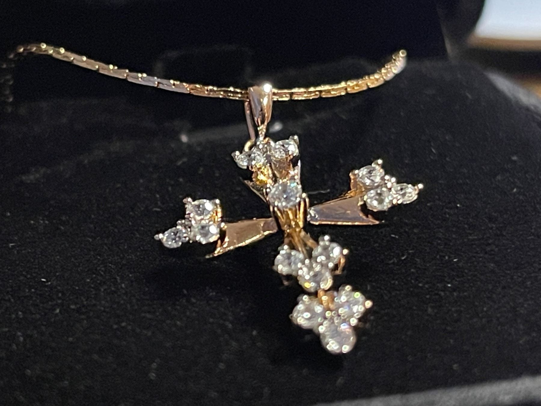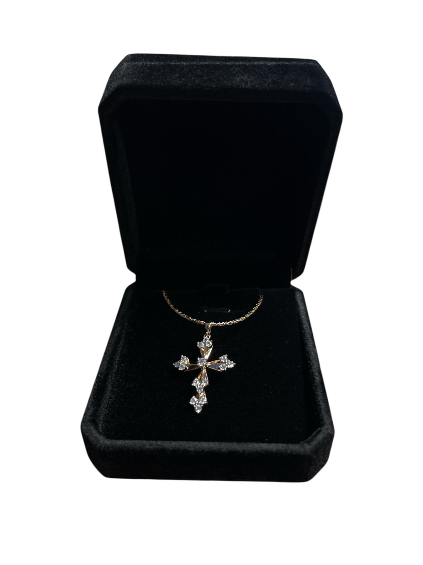 New 18K Gold Plated 30.0mm Simulated Diamond (CZ) Cross Necklaces - Chain 19" Long