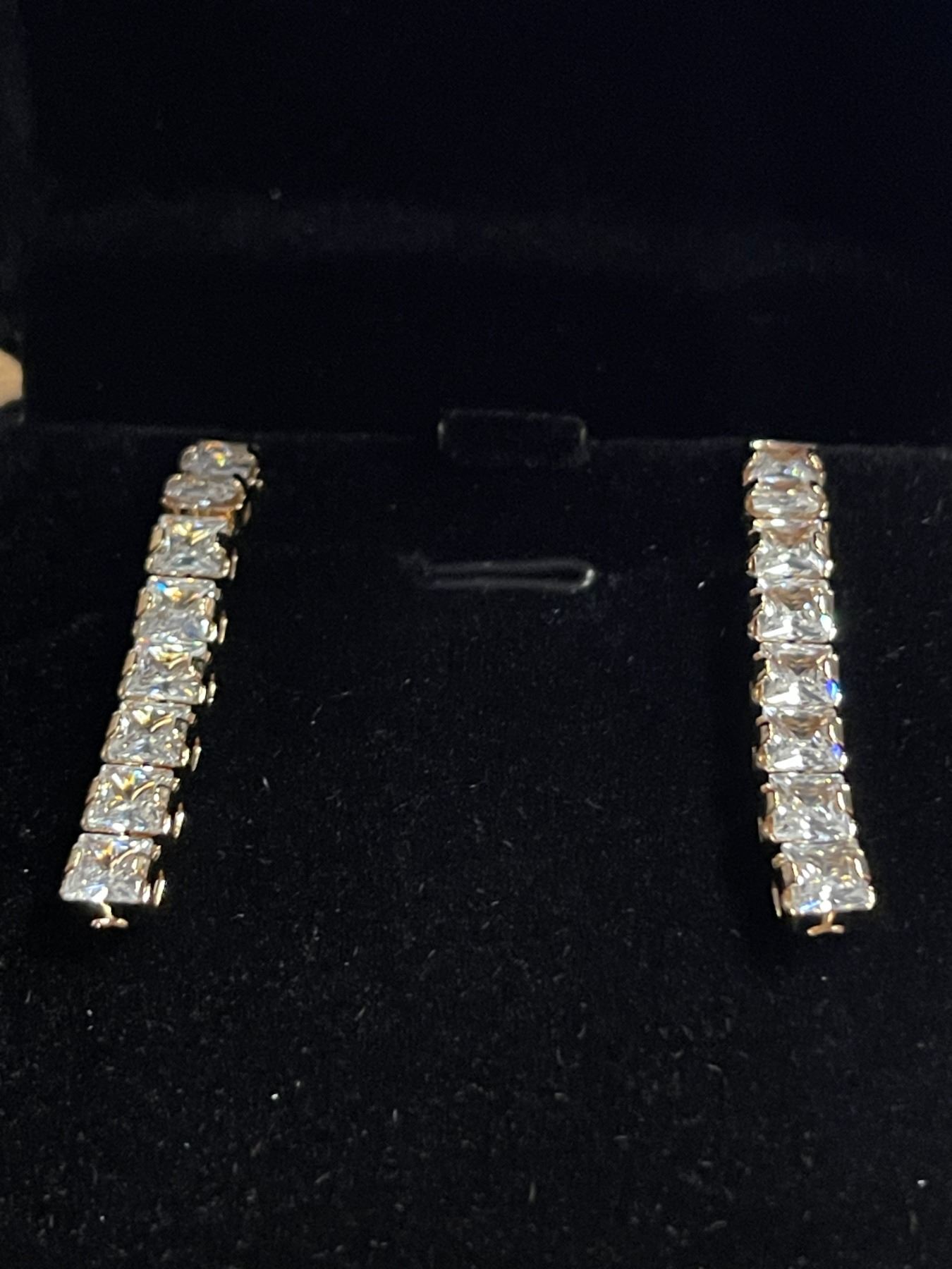 New 18K Gold Plated 36.0mm Long Simulated Diamond (CZ) Tassel Earrings