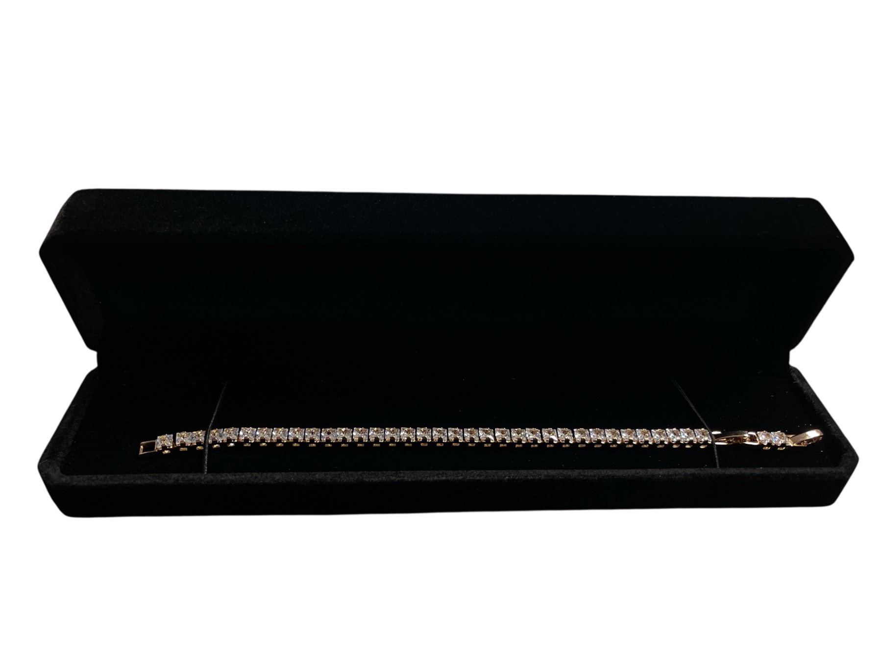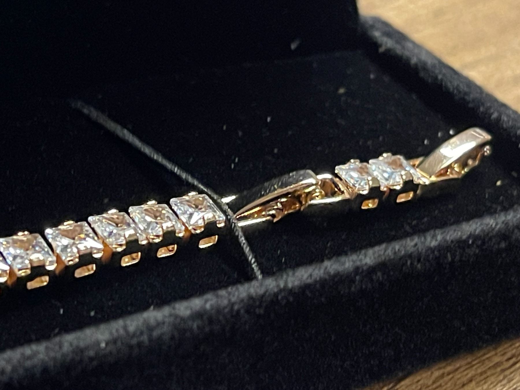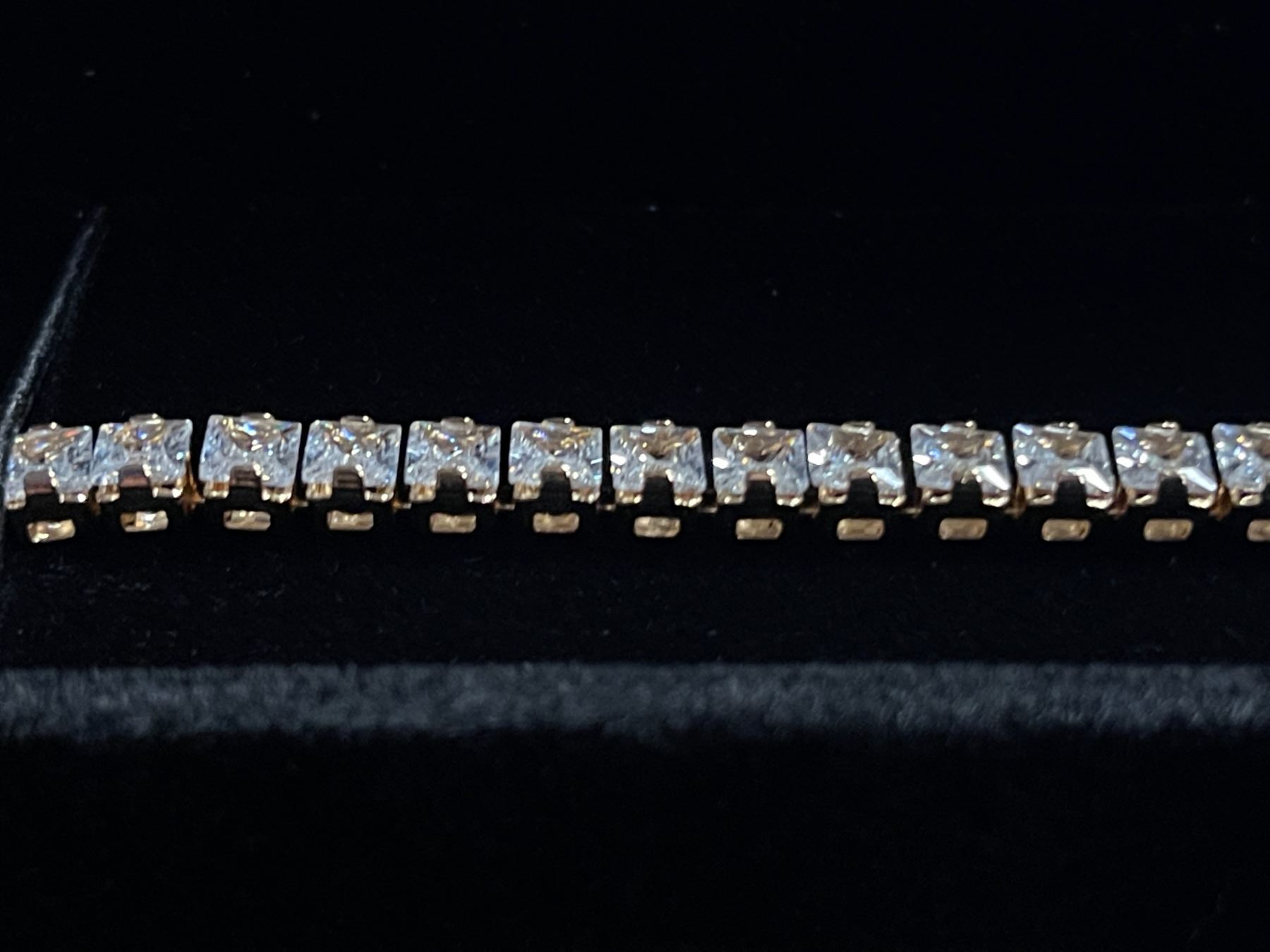 New 18K Gold Plated 4.0mm Princess Cut Simulated Diamond (CZ) Tennis Bracelet - Adjustable Chain 7"- 8" Long